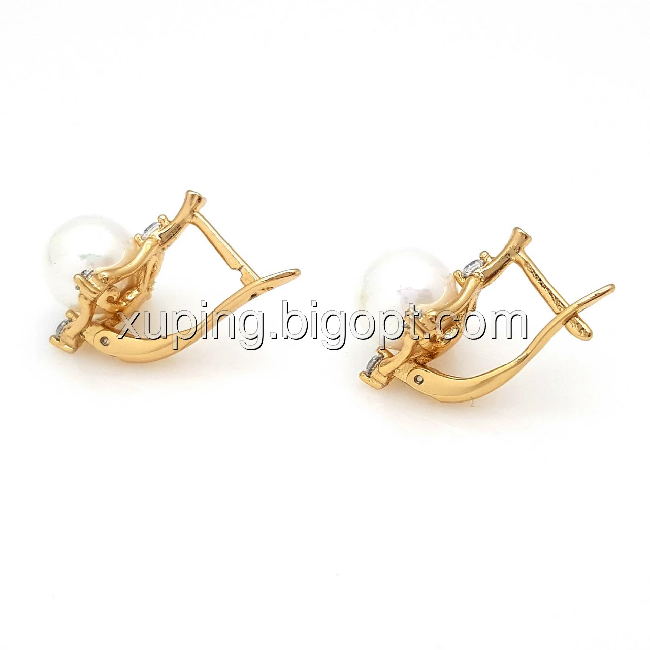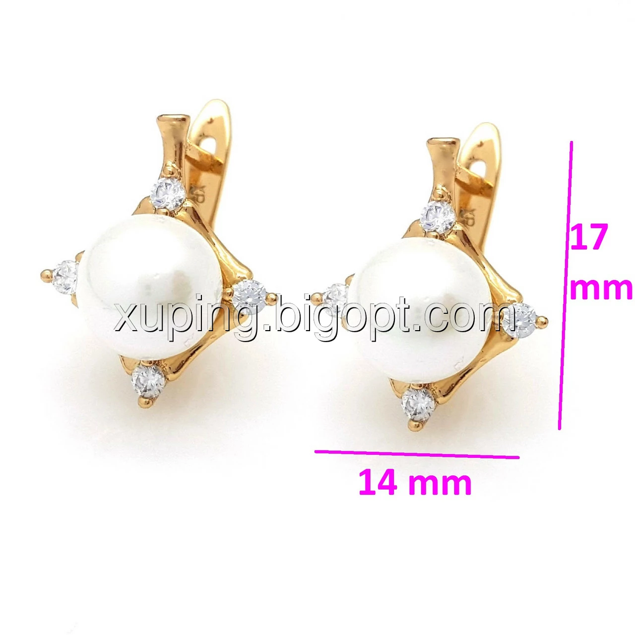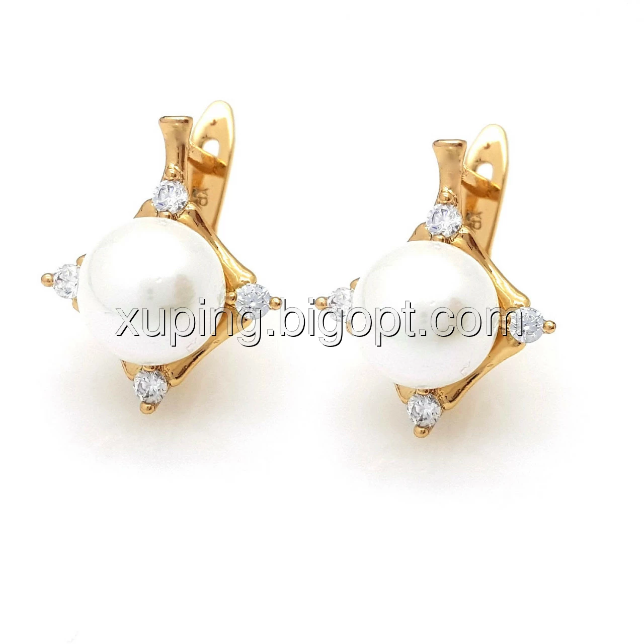 Сережки, Ромб з Перлиною та цирконієм, англ.замок, позолота Xuping,18К