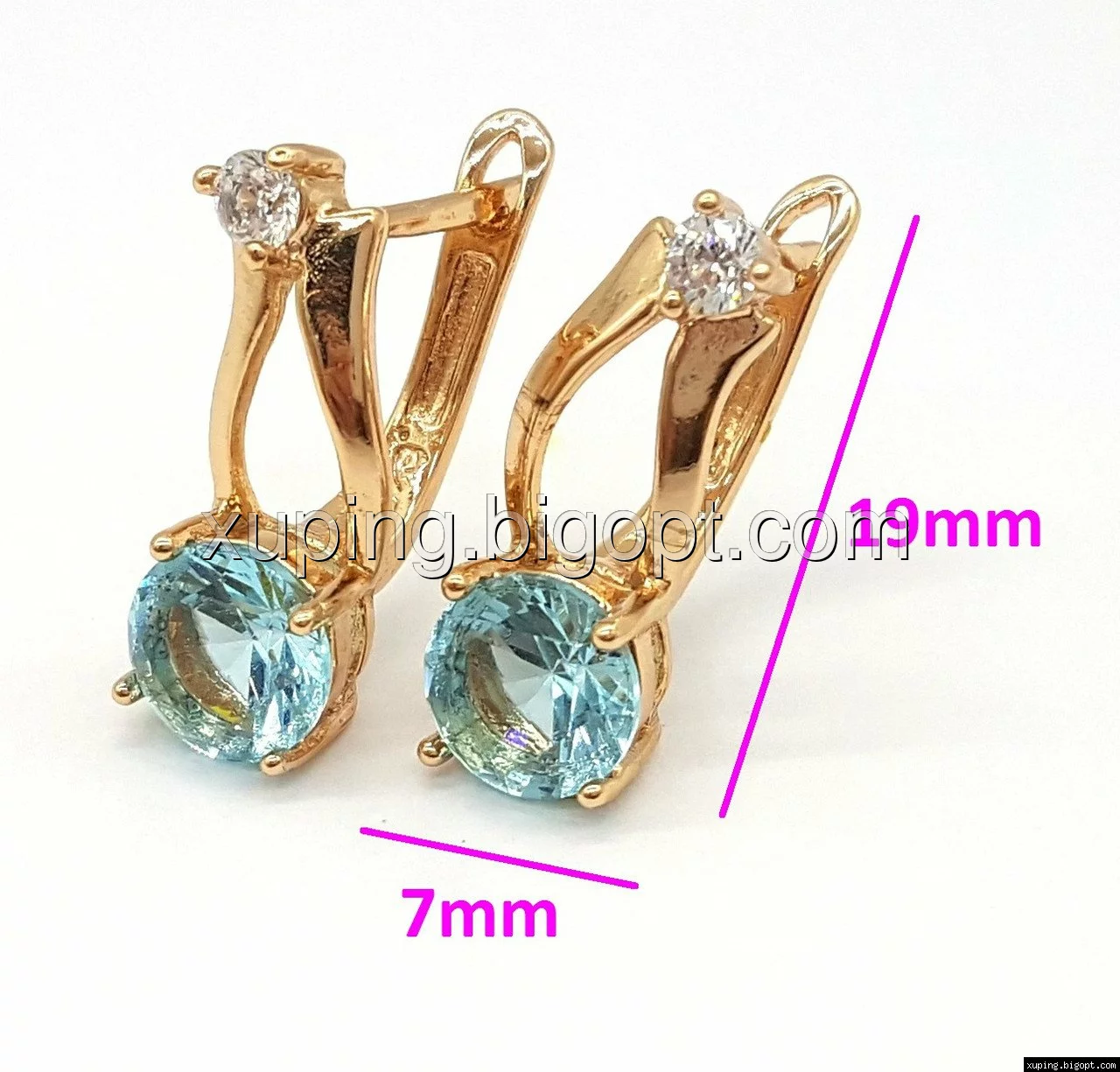 Серьги выполнены из медицинского сплава на основе латуни с добавлением легирующих елементов, с целью улучшения каких-либо его свойств, например коррозионной стойкости или прочности. Такой сплав не вызывает аллергии, не вступает в реакцию с потом человека, не меняет свои свойства под воздействием соленой воды и солнца. Поверхность сережек покрыта золотом 18 карата.