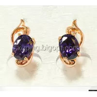 Серьги с фиолетовым цирконием, англ.замок, 18мм*7мм, позолота
