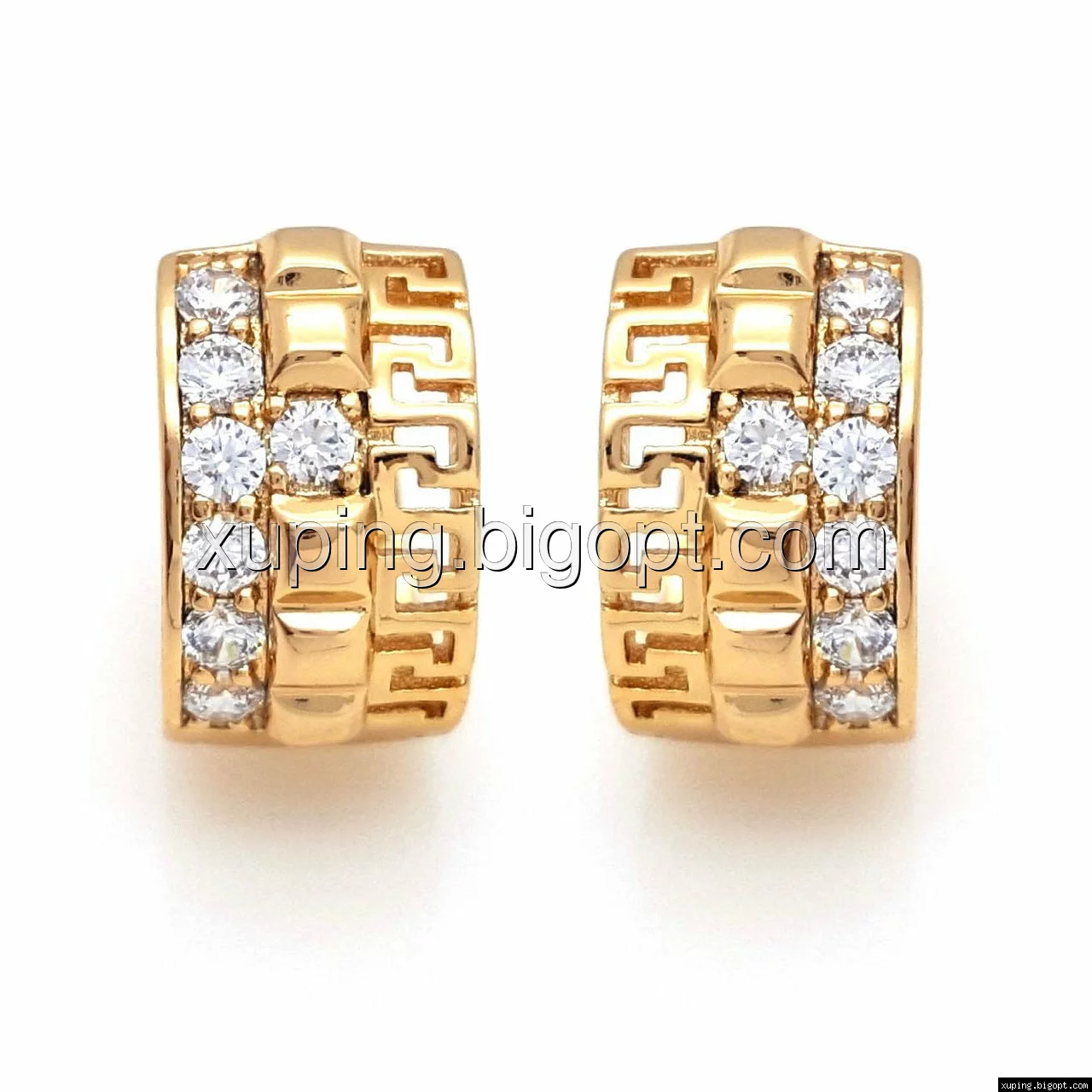 Серьги с греческим рисунком и вставками циркония, позолота Xuping