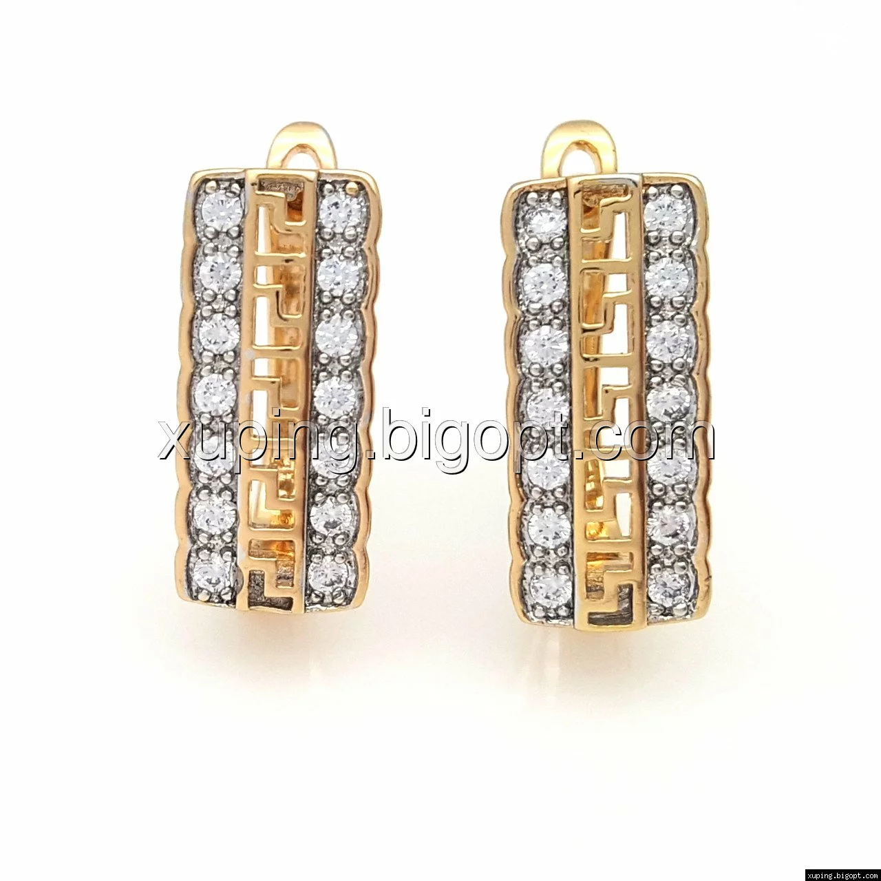 Серьги с Греческим узором, и камнями, англ.замок, позолота+родий