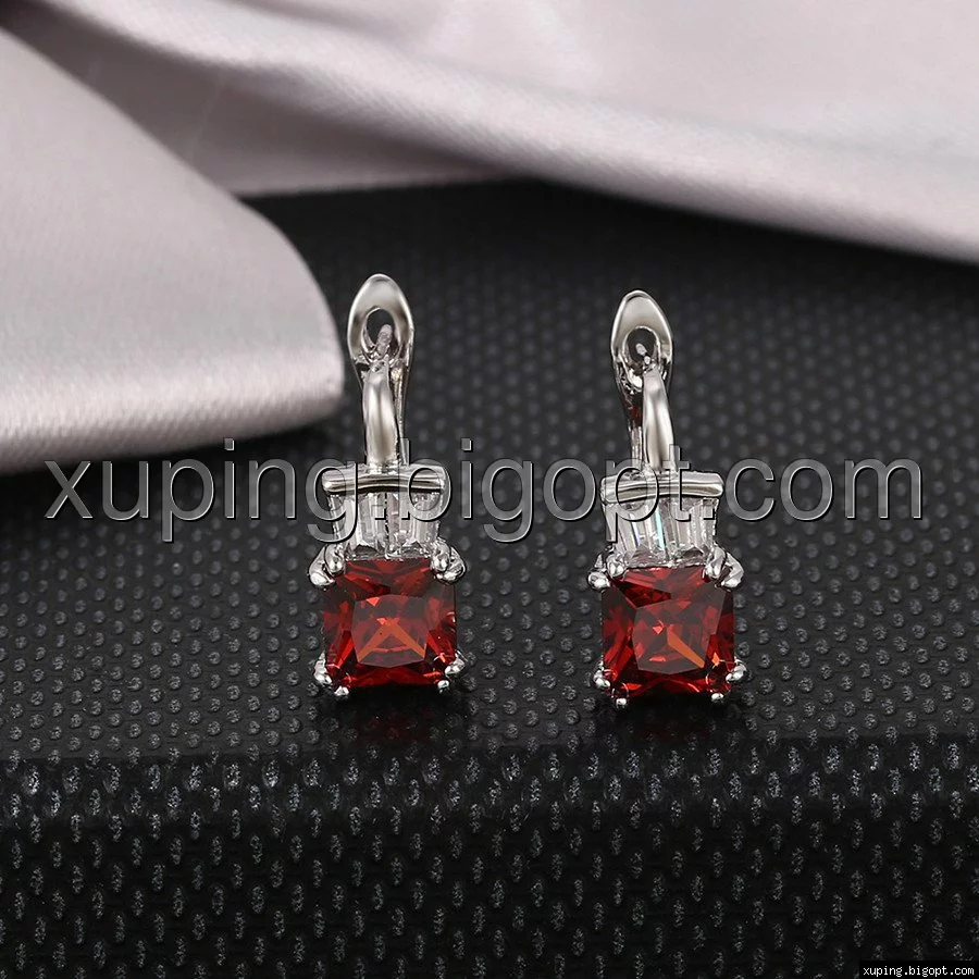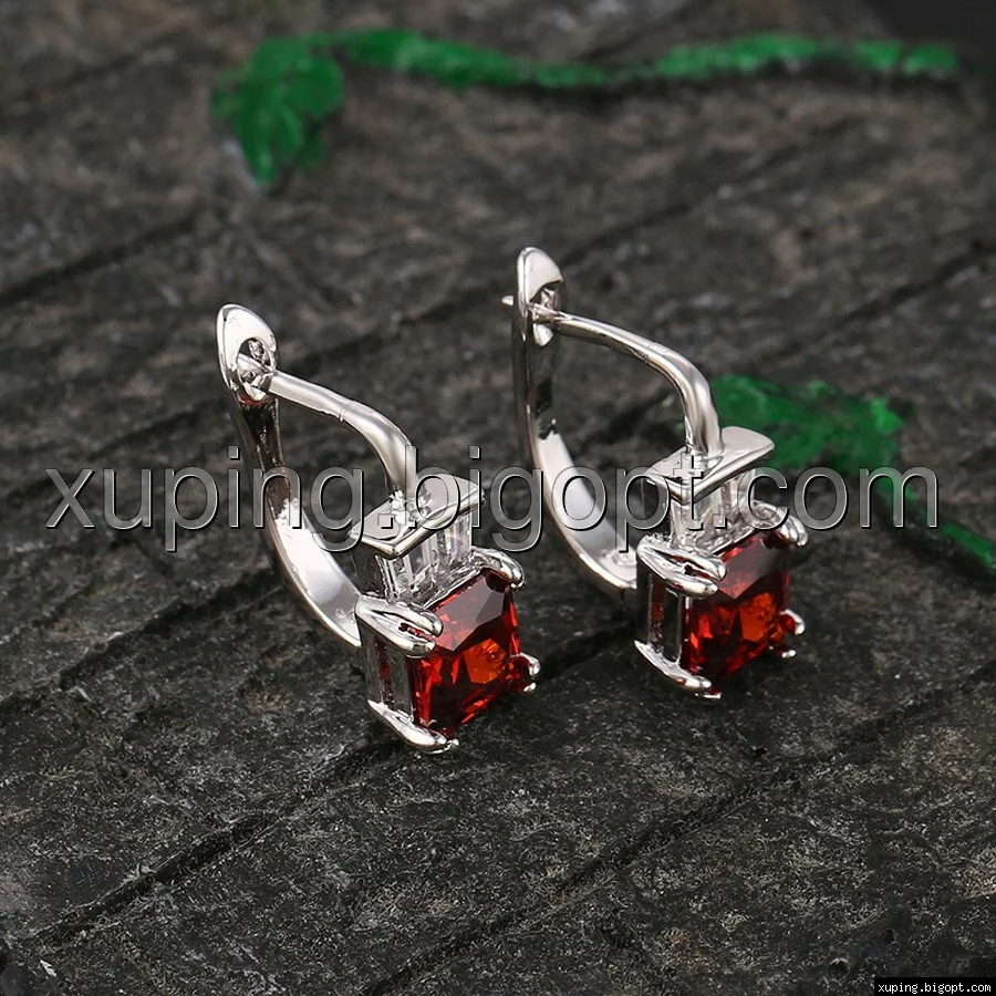 Серьги с красным цирконием, англ.замок, родий