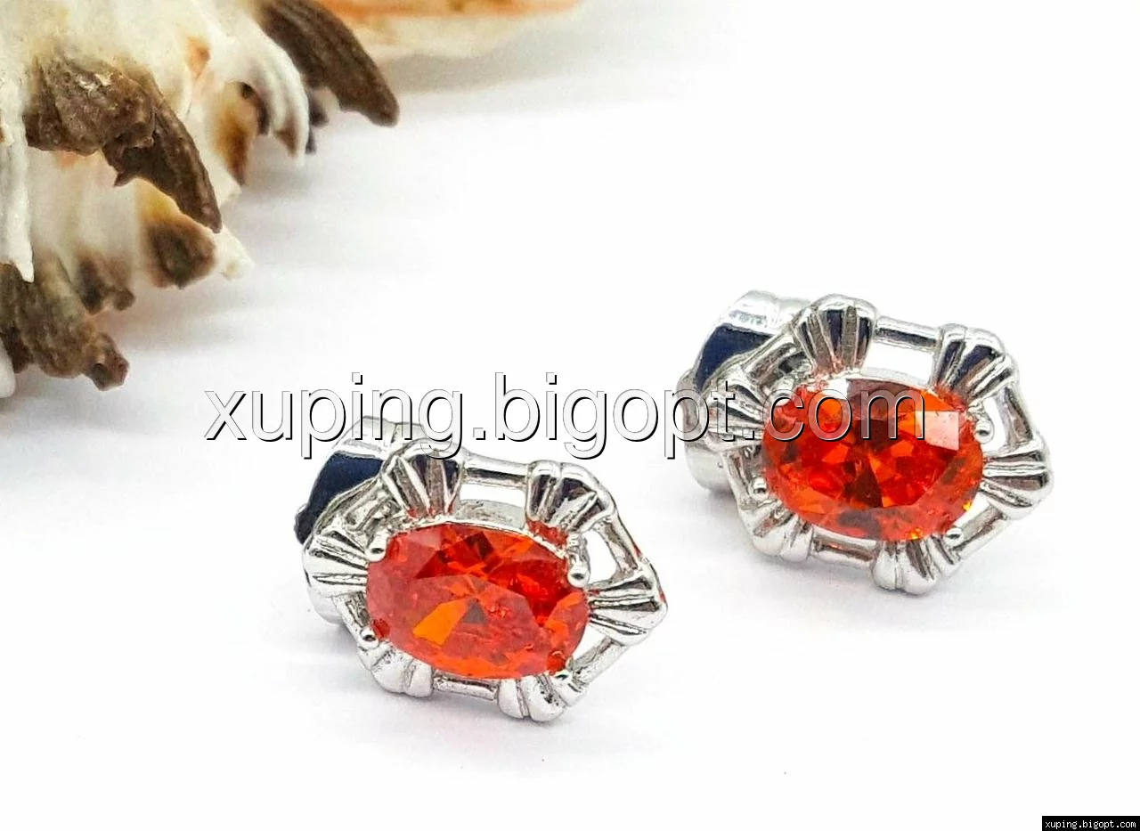 Сережки цвяшки родовані, Овал, помаранчевим цирконій, Xuping