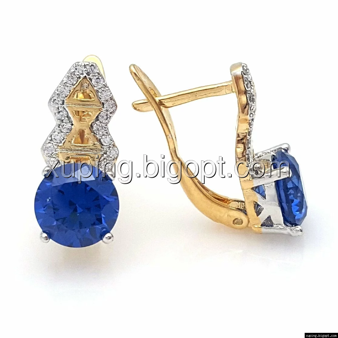 Сережки Корона з синім цирконієм, англ.замок, позолота+родій, 18К