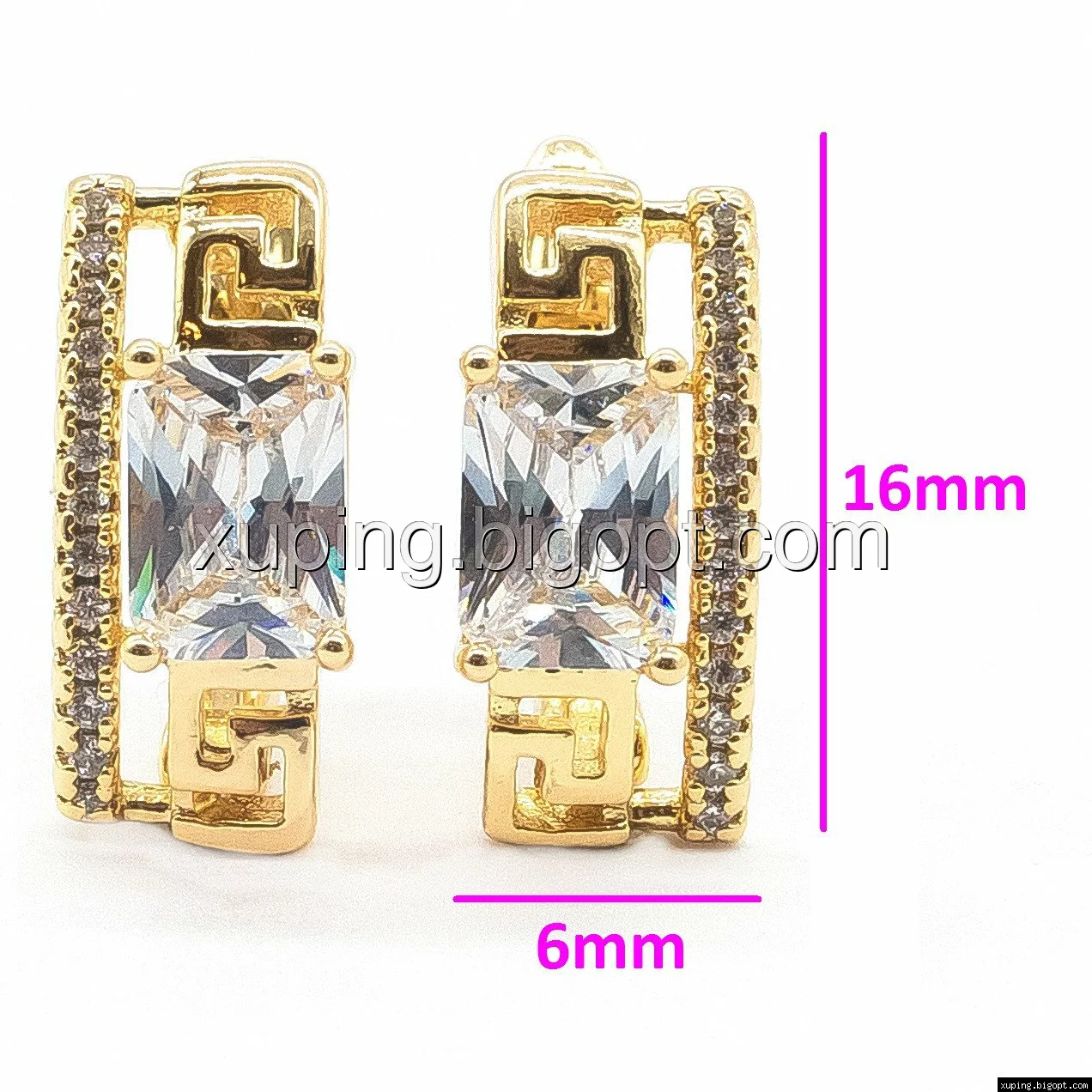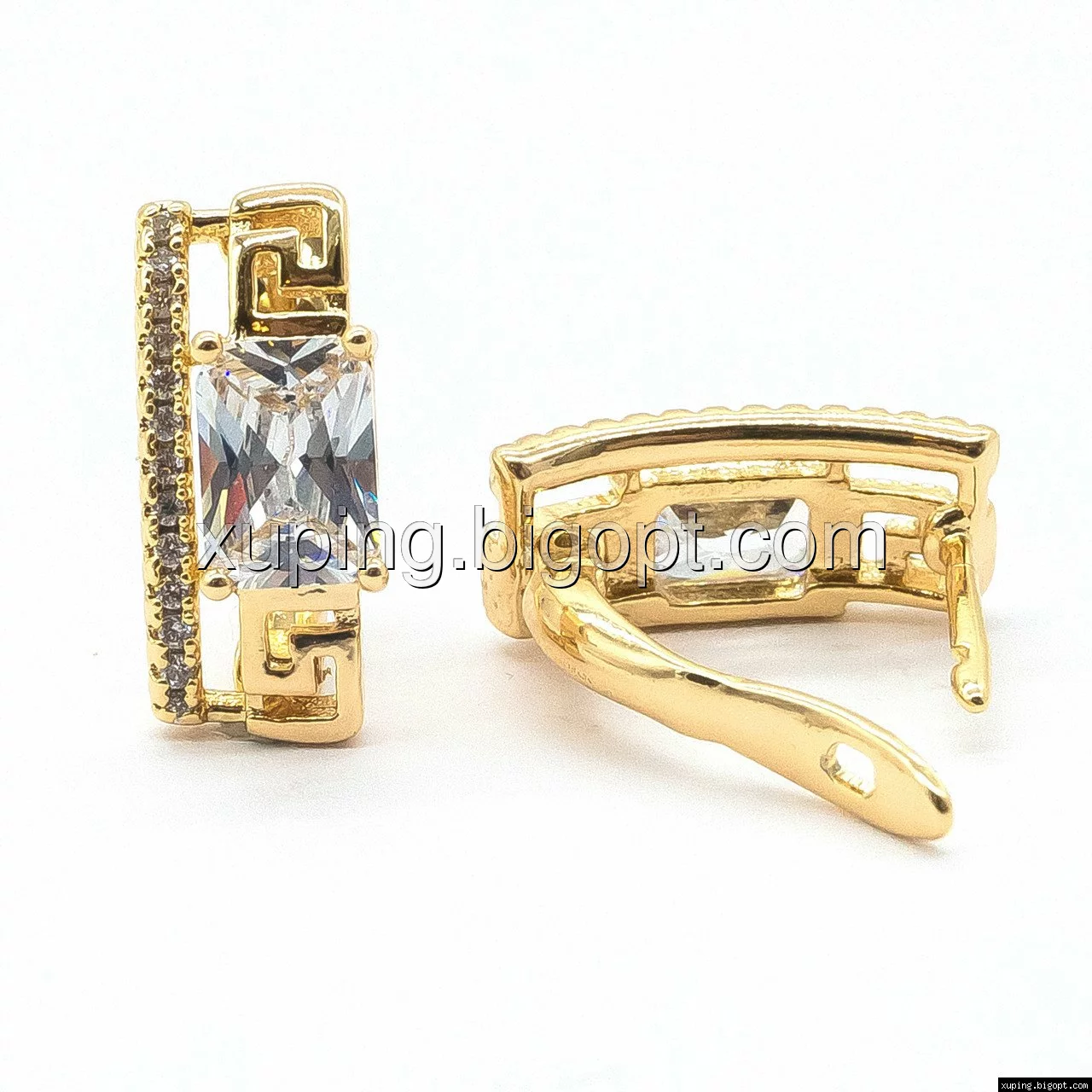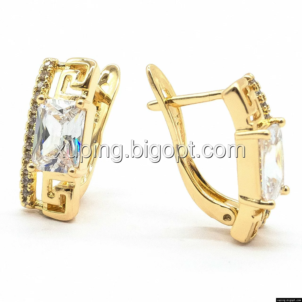 Серьги с узором и прямоугольным цирконием, англ.замок, позолота