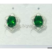 Сережки цвяшки родовані, Овал з зеленим цирконієм, Xuping