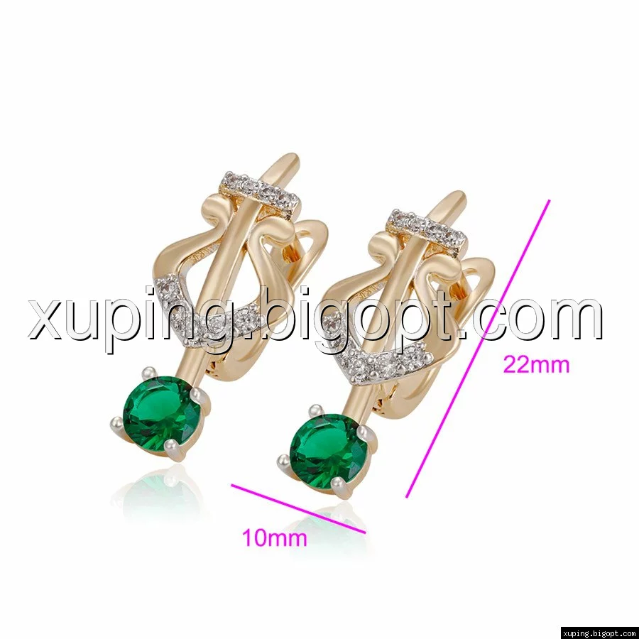 Сережки Класика з зеленим цирконієм, англ.замок, позолота+родій, Xuping, 18К