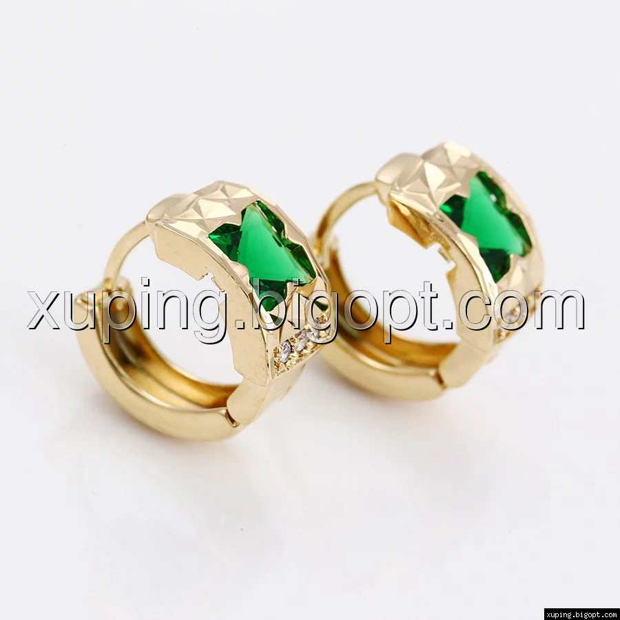 Сережки різблені, вставка зелений цирконій, позолота Xuping,18К
