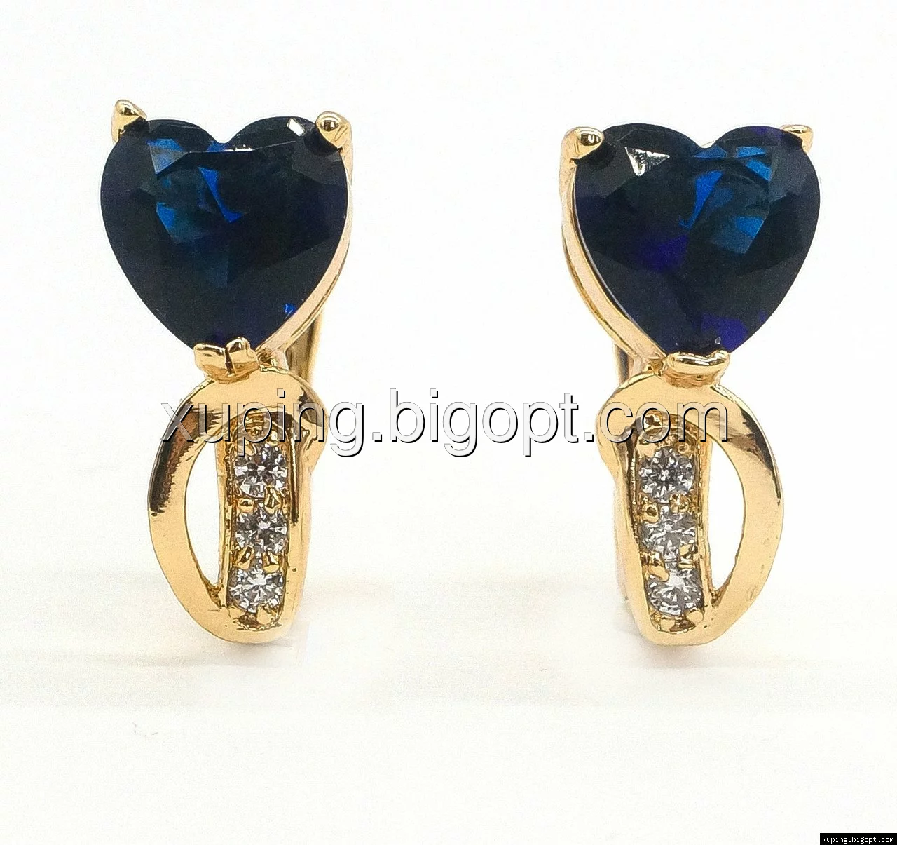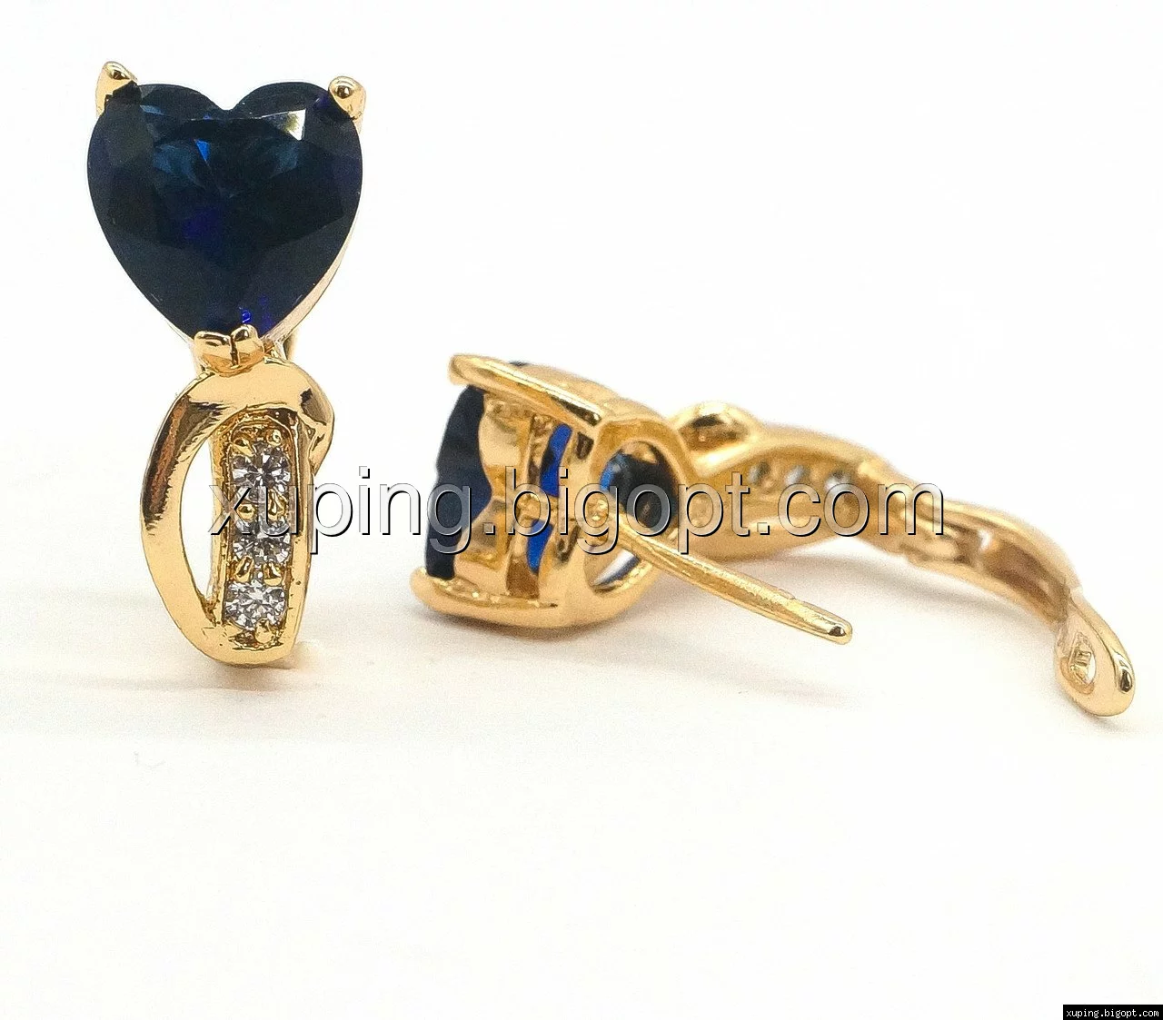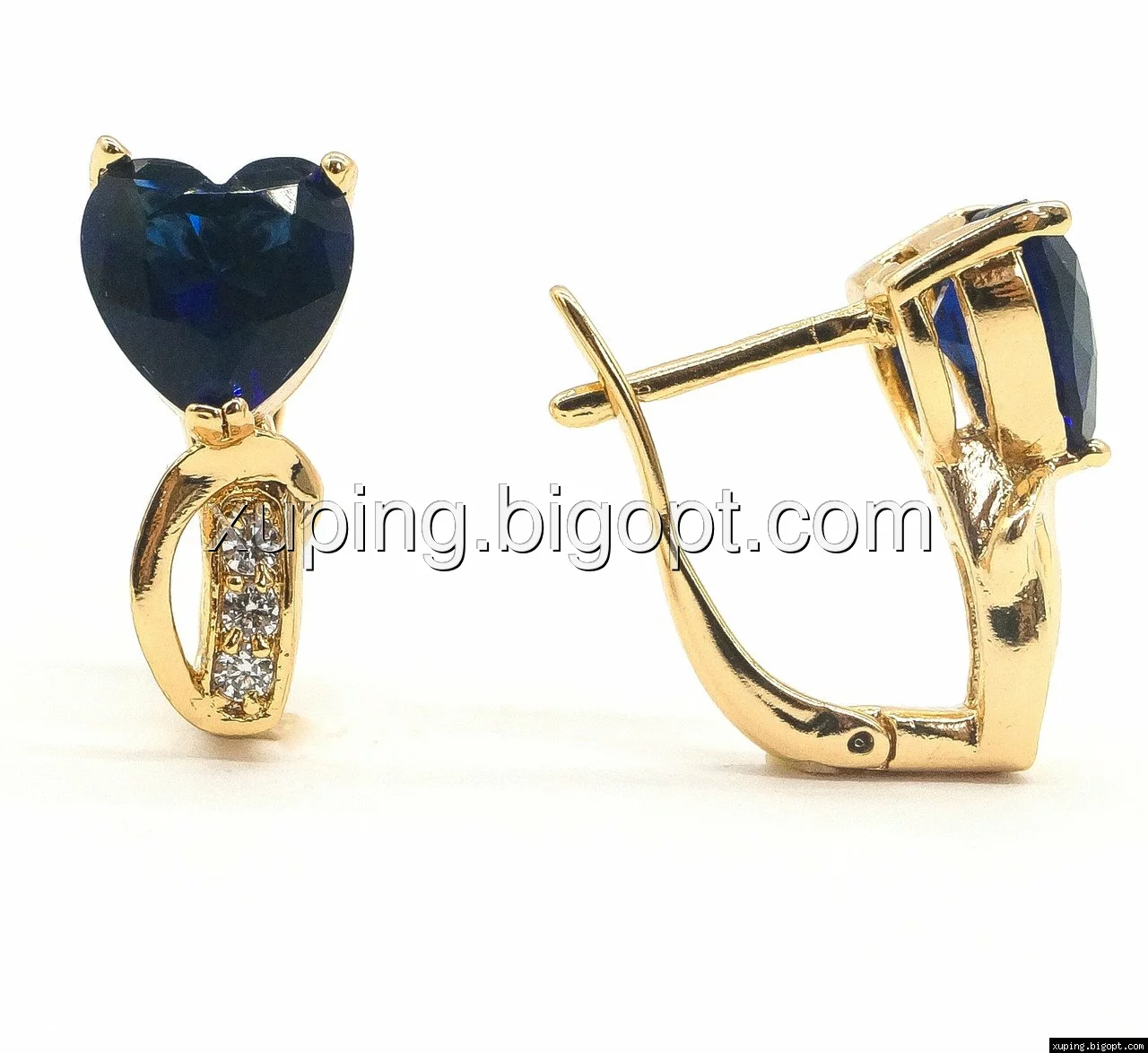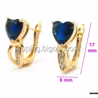 Серьги Сердце, с синим цирконием, англ.замок, позолота