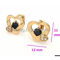 Серьги Сердце, с черным цирконием, позолота
