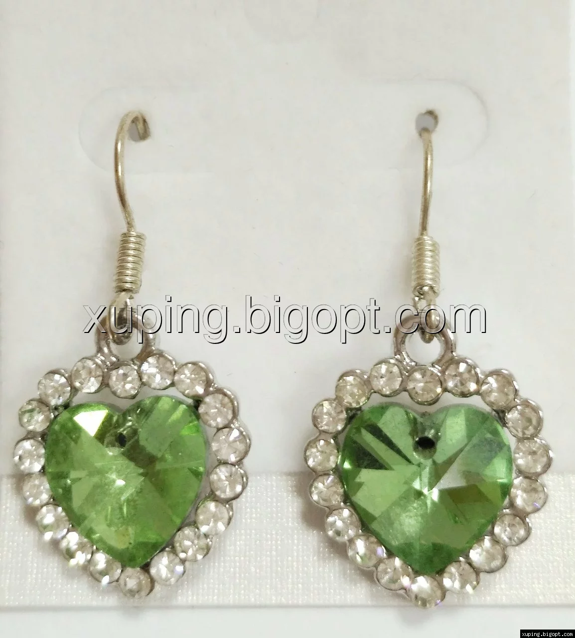 Серьги Сердце с салатовым камнем