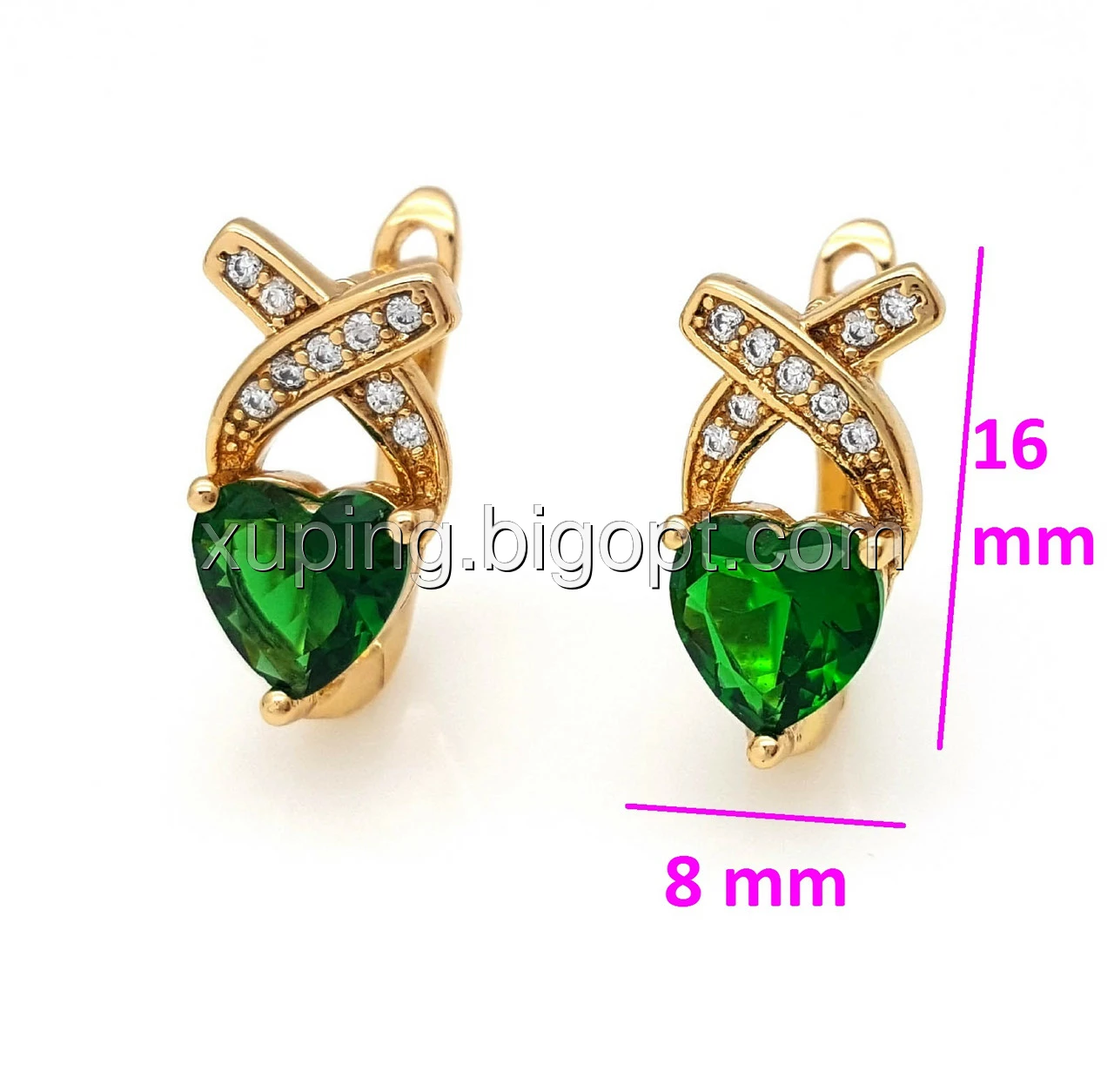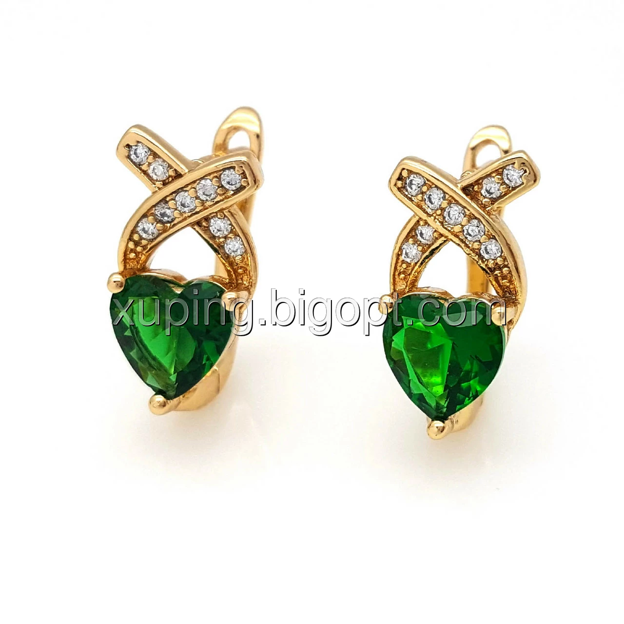 Сережки Сердце, зелений цирконій, англ.замок, позолота Xuping, 18К