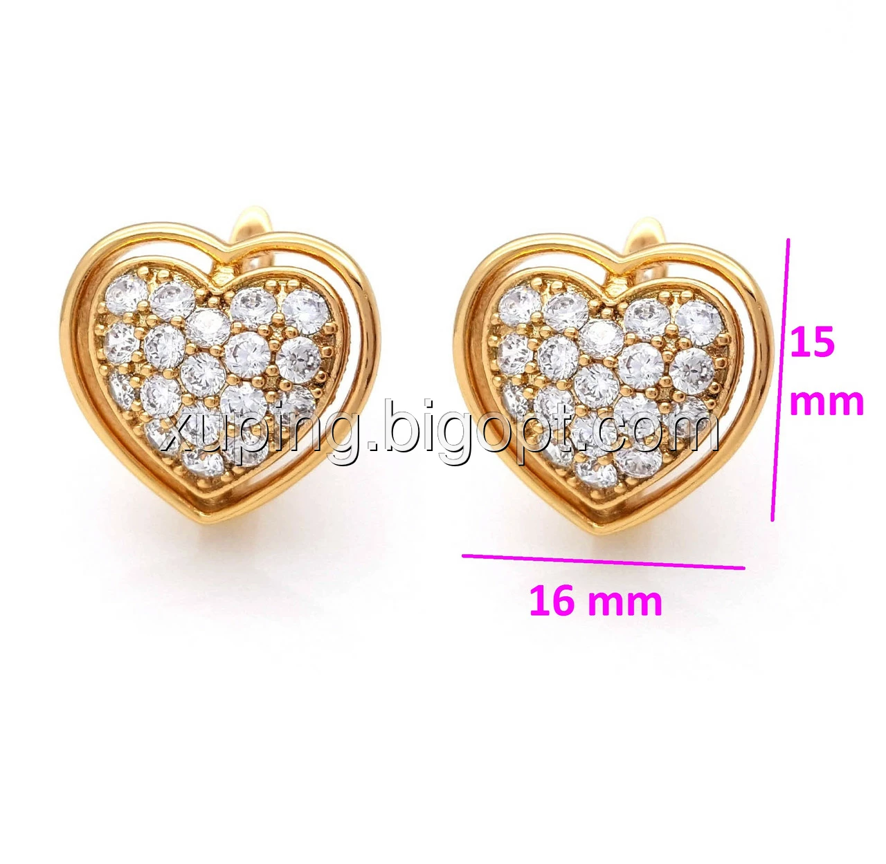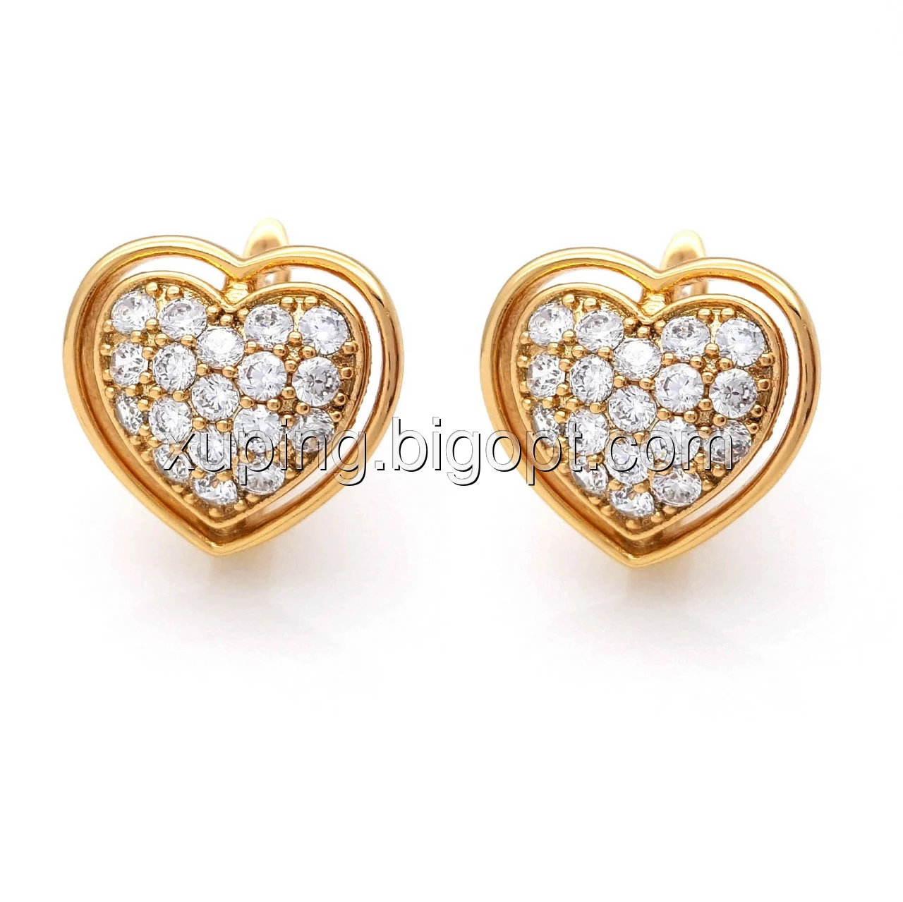 Сережки Серце з россипом цирконія, англ.замок, позолота Xuping, 18К