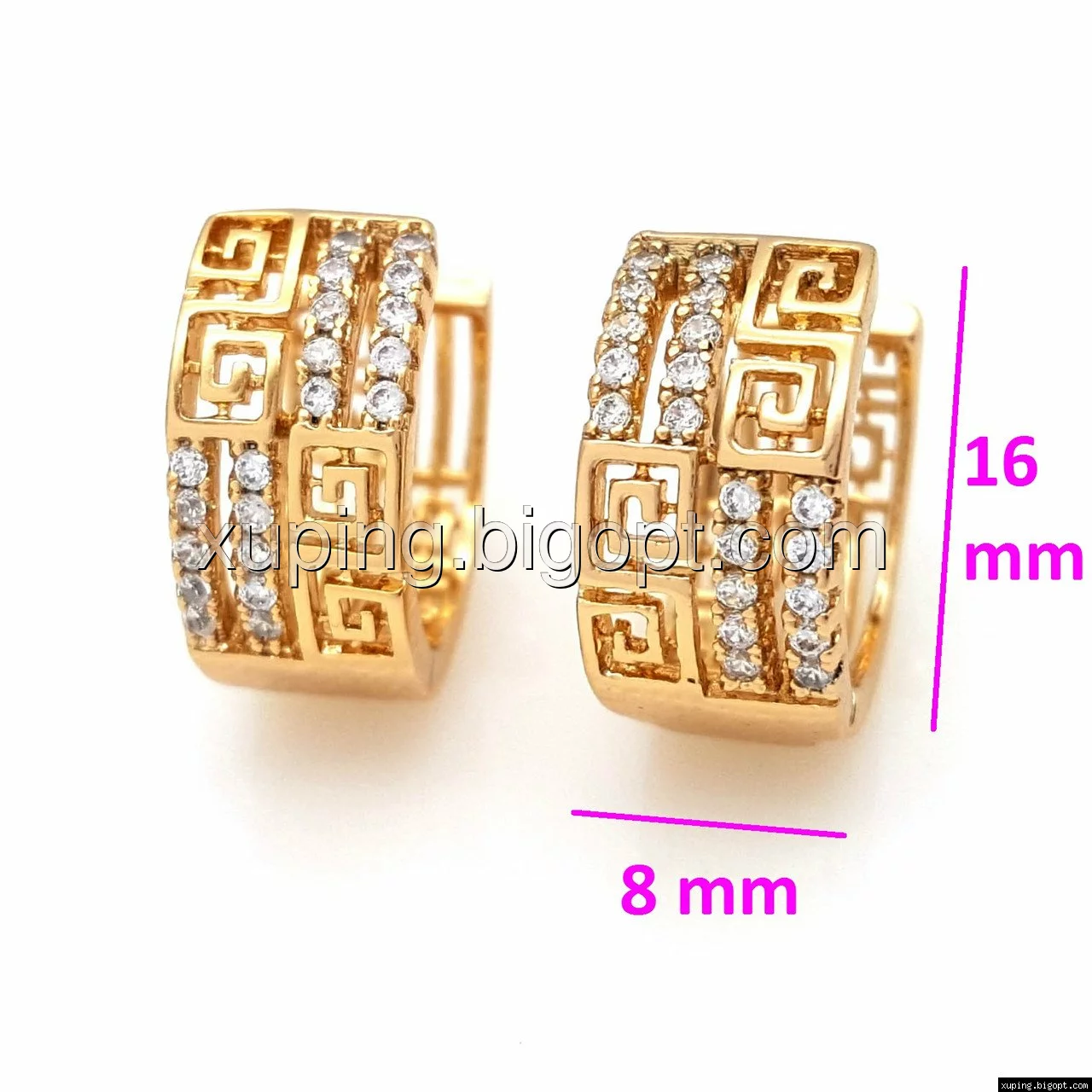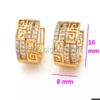 Серьги Шахматка, с греческим рисунком и камнями, позолота Xuping