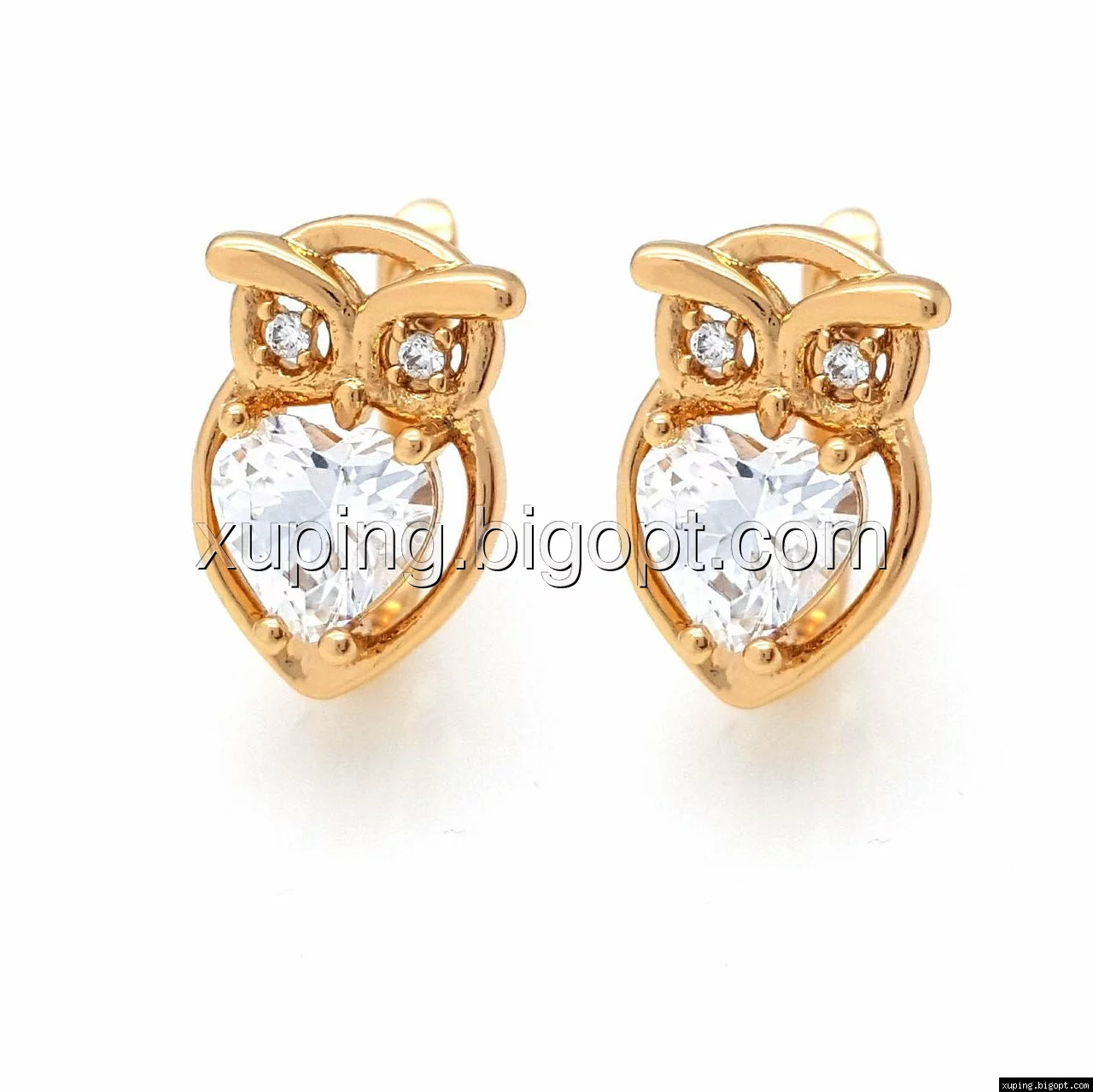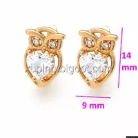 Серьги Совушка с цирконием, англ.замок, позолота Xuping