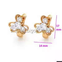 Серьги Трилистник с цирконием, англ.замок, позолота Xuping