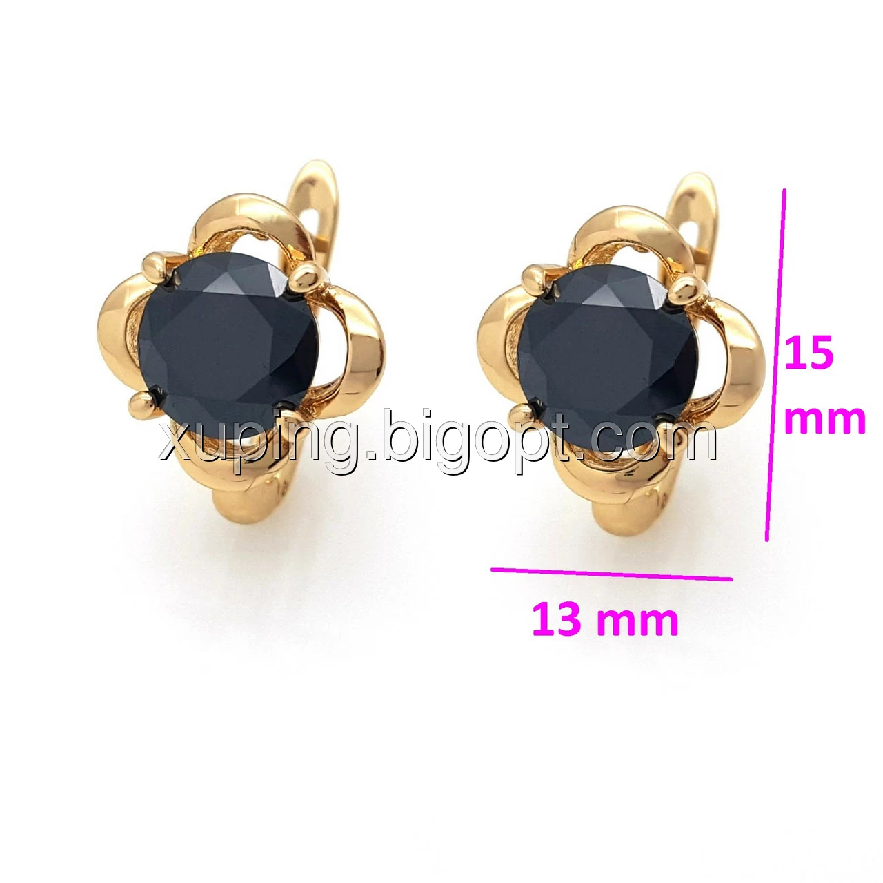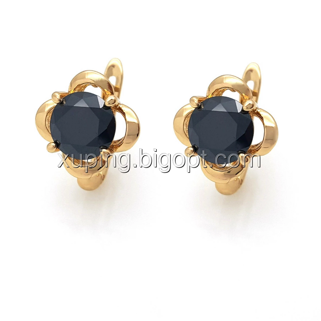 Серьги Цветок с черным цирконием, англ.замок, позолота