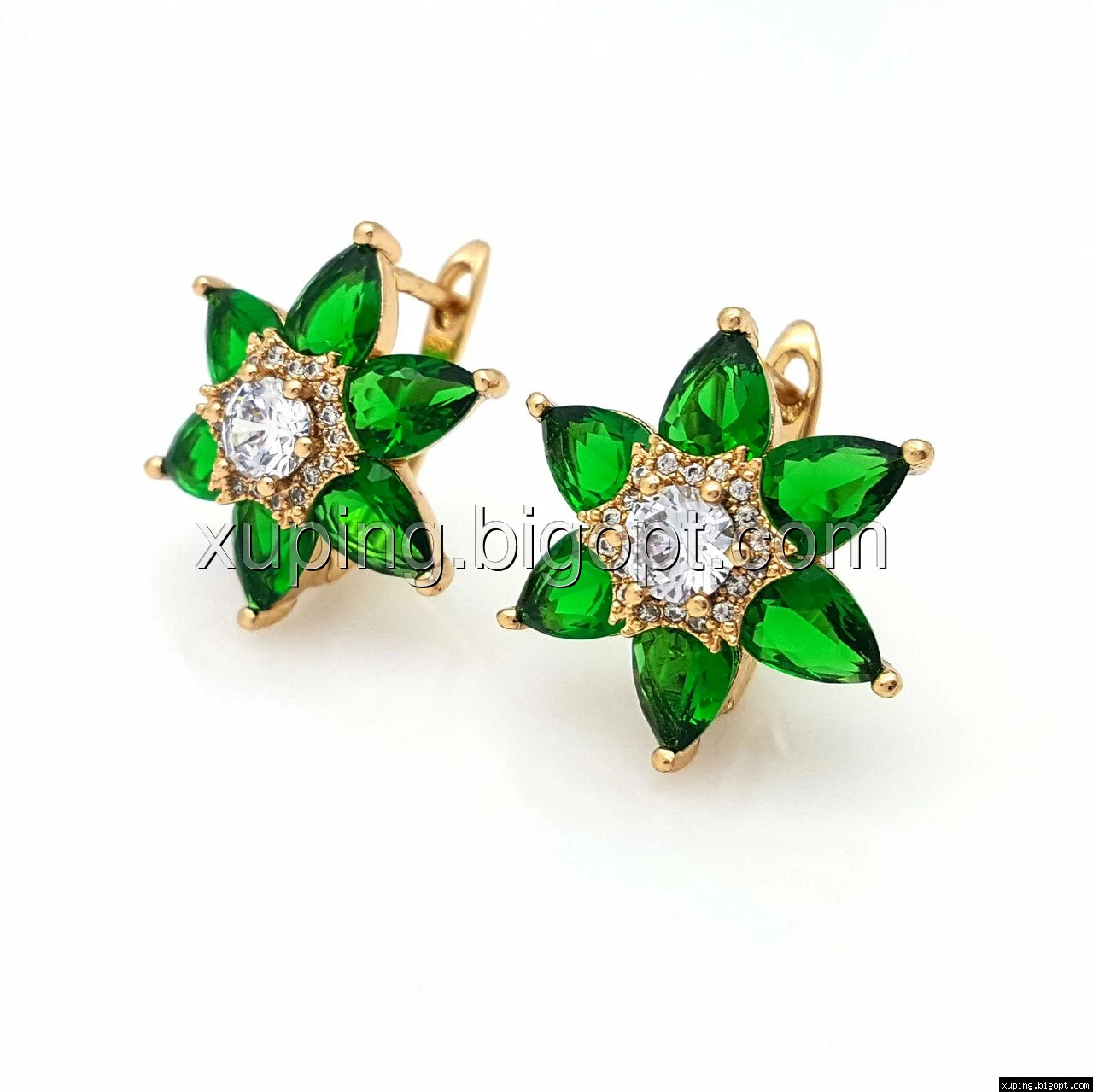 Сережки Квітка, з зеленим цирконієм, англ.замок, позолота Xuping, 18К
