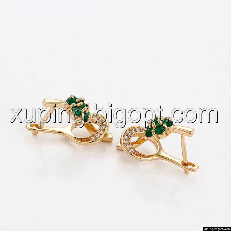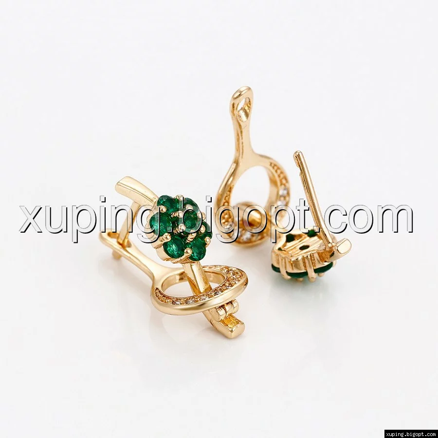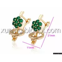 Сережки Квіточка з зеленим цирконієм, англ,замок, позолота Xuping, 18К
