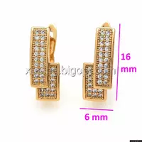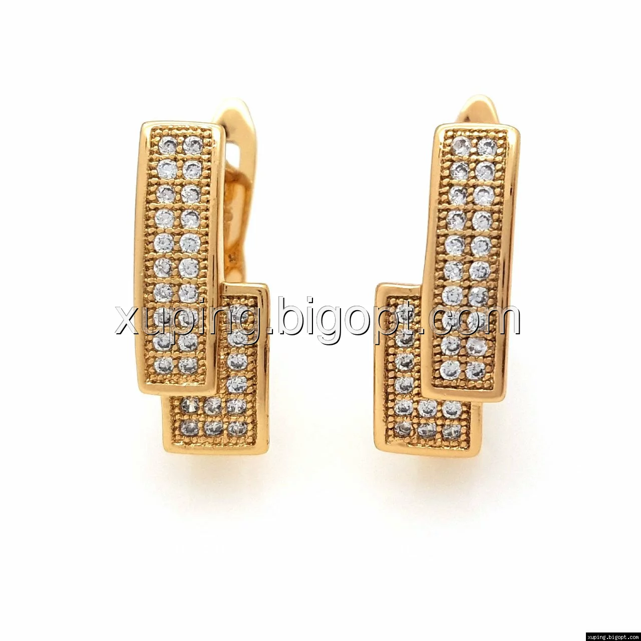 Серьги Два Прямоугольника, с россыпью камней, англ.замок, позолота Xuping