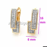 Серьги Два Прямоугольника с россыпью камней, англ.замок, позолота+родий