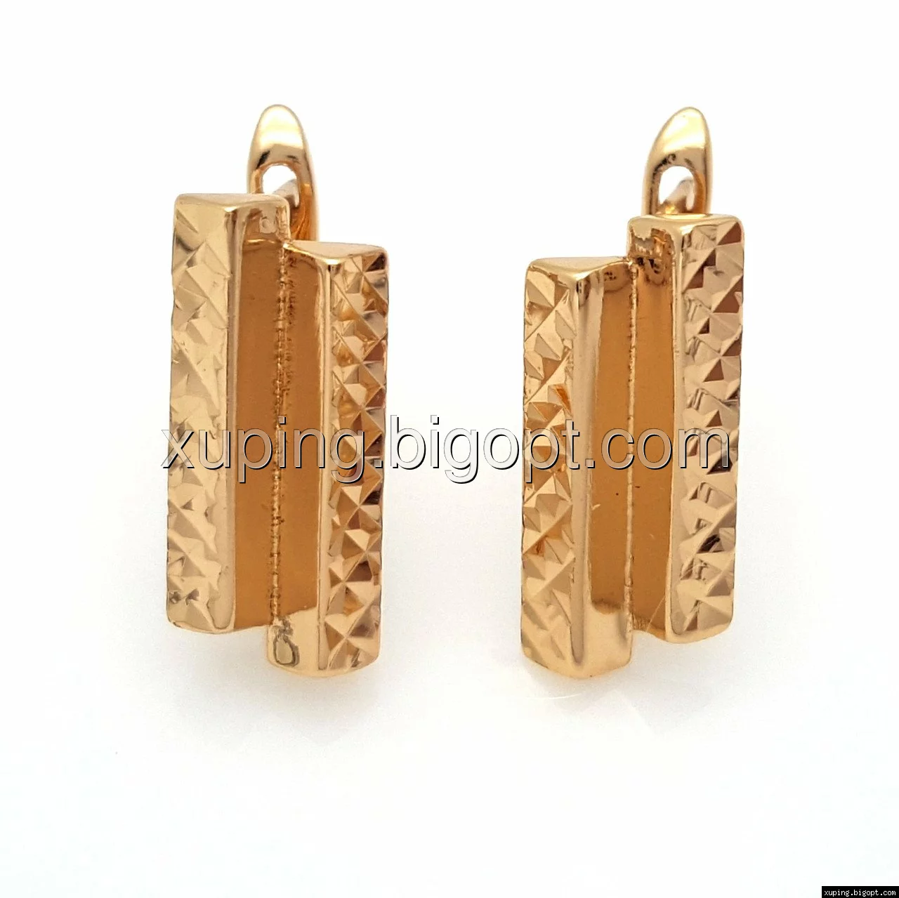 Серьги Две Дорожки, с узором, без камней, англ.замок, позолота Xuping