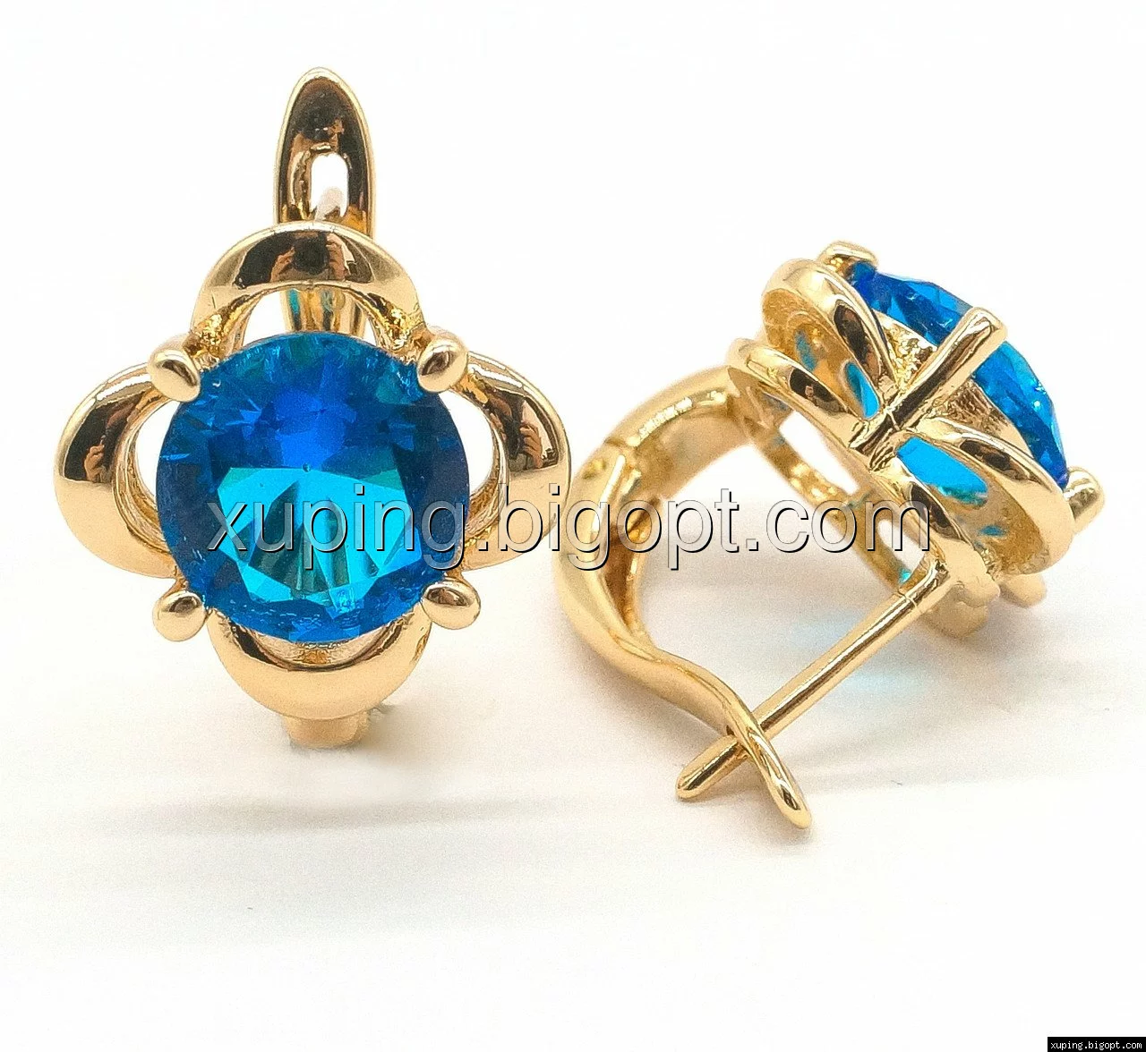 Серьги Цветок, с голубым цирконием, англ.замок, позолота