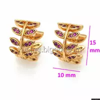 Серьги Веточка с малиновым цирконием, позолота Xuping