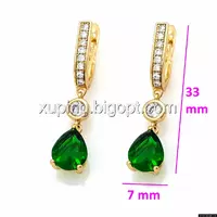 Серьги висюльки, Капелька с зеленым цирконием, англ.замок, позолота Xuping