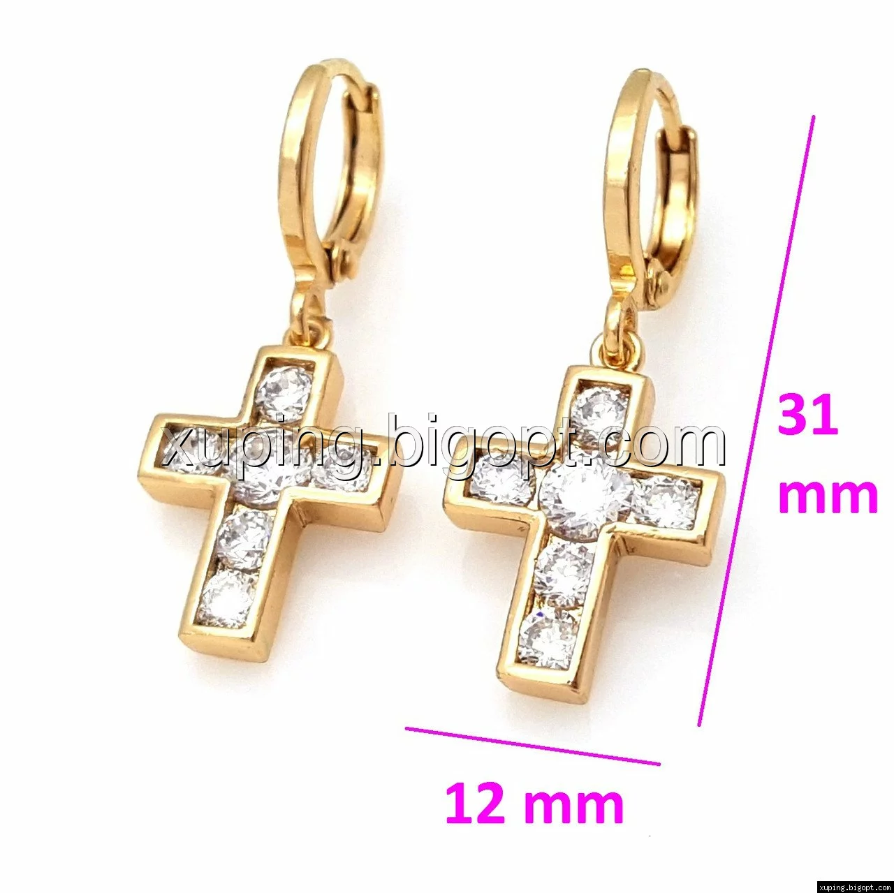 Серьги висюльки, Крестики со вставкой циркония, позолота Xuping