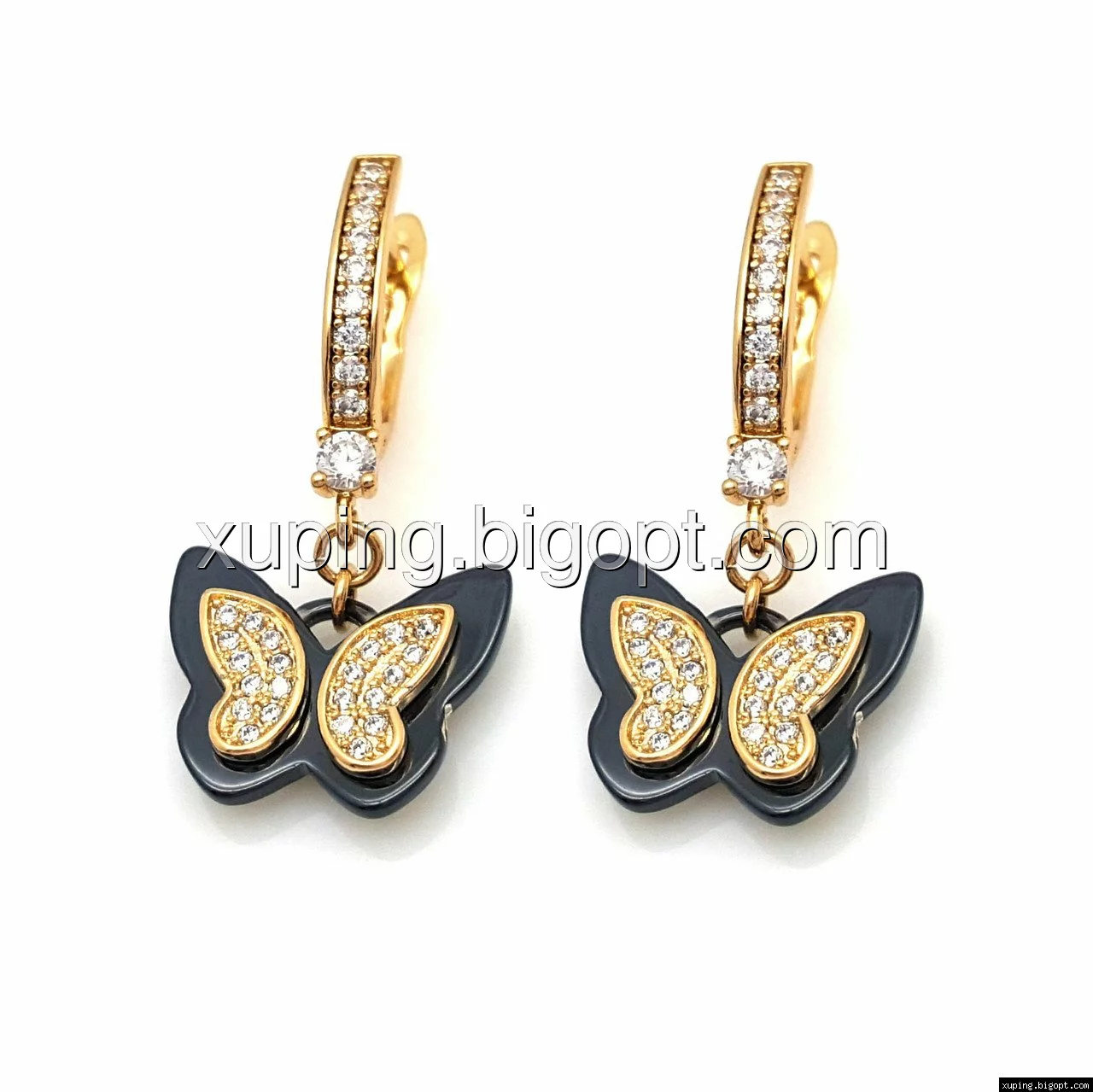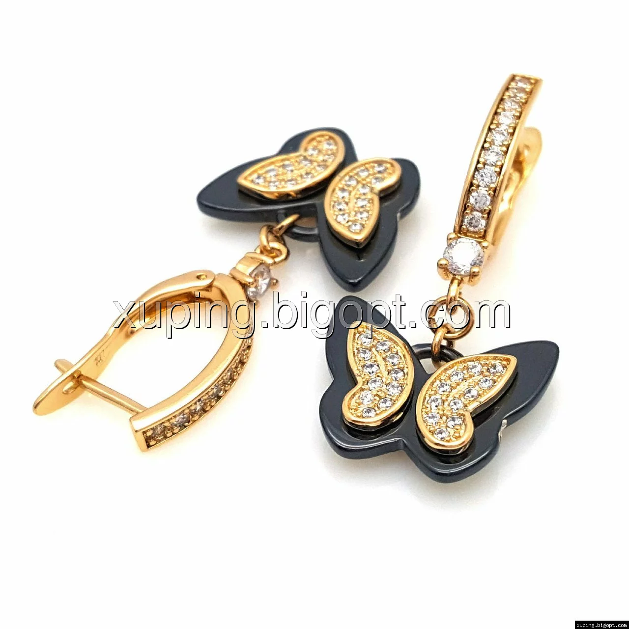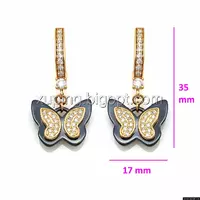 Серьги висюльки, Бабочка с черной керамики, вставка цирконий, англ.замок, позолота Xuping,