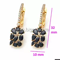 Серьги висюльки, с черным цирконием, англ.замок, позолота Xuping