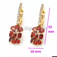 Серьги висюльки, с красным цирконием, англ.замок, позолота Xuping