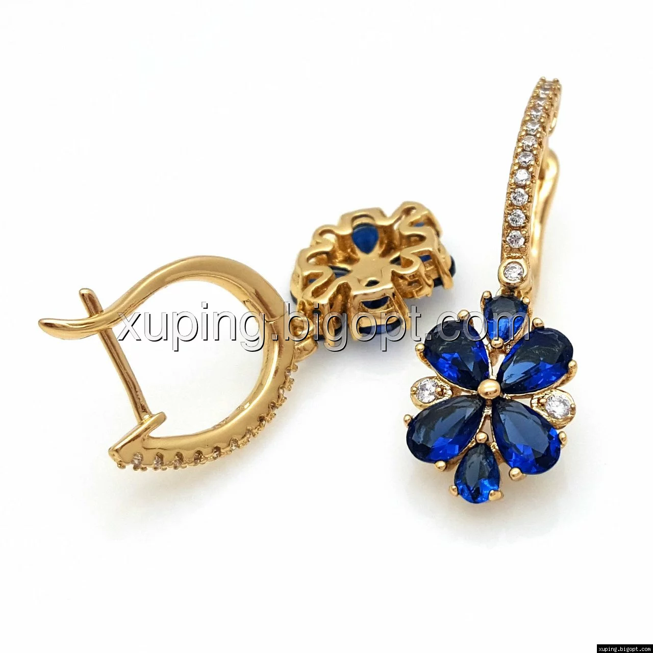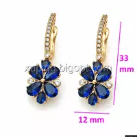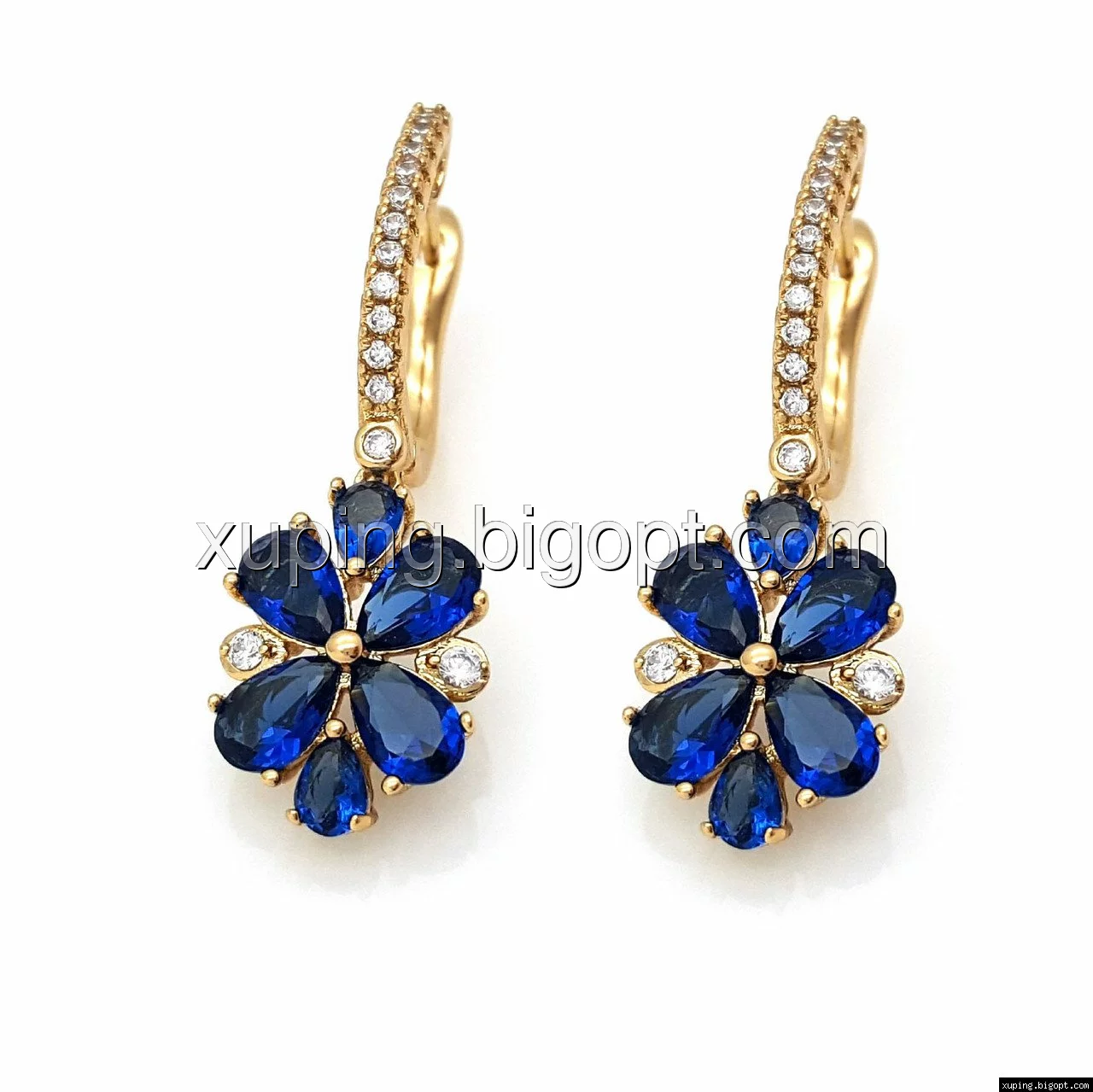 Серьги висюльки, с Цветок синим цирконием, англ.замок, позолота Xuping