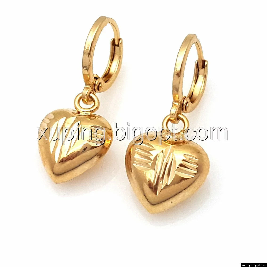 Серьги висюльки, Сердце с узором, без камней, позолота
