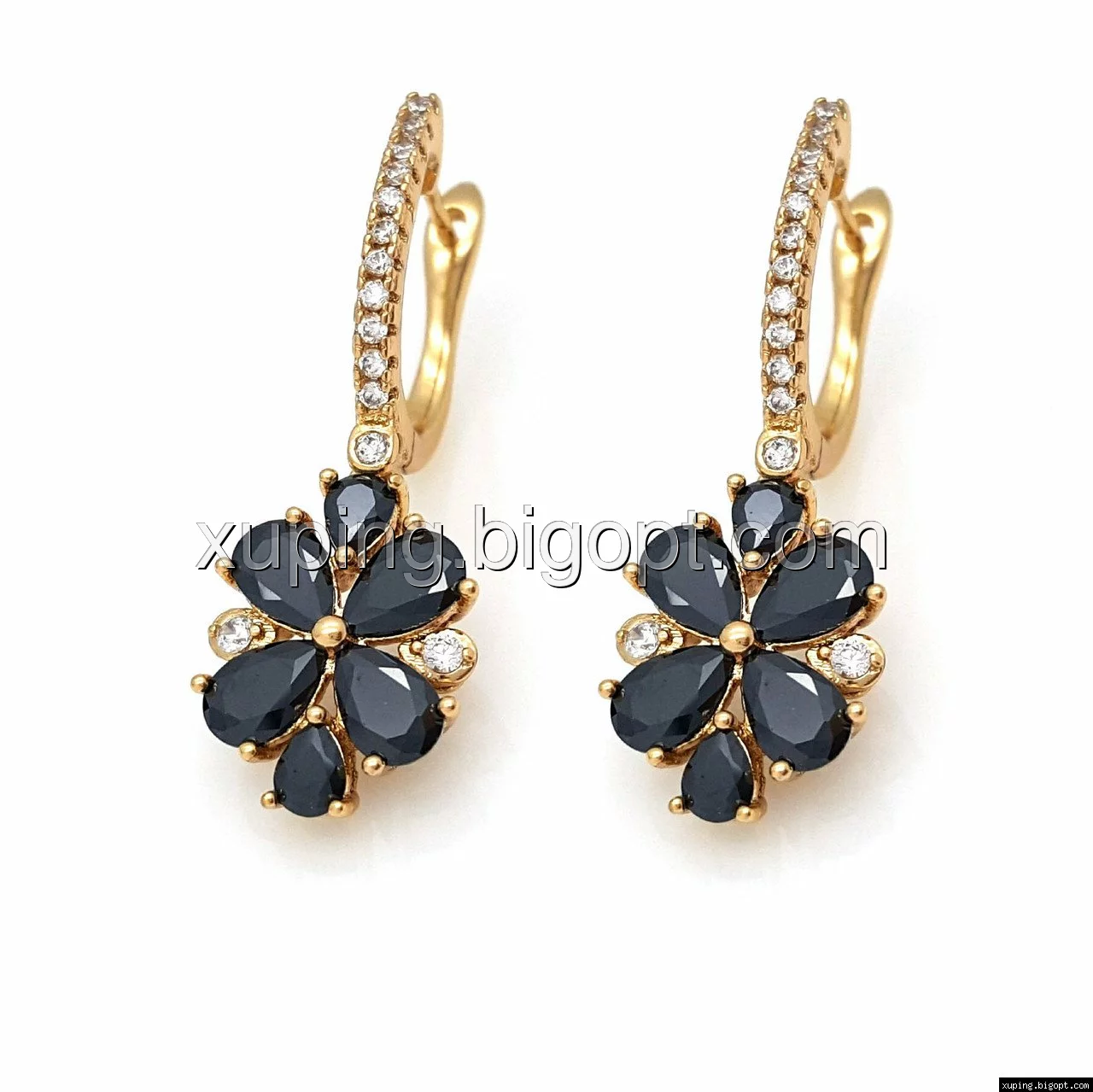 Серьги висюльки, Цветок с черным цирконием, англ.замок, позолота Xuping