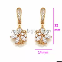 Серьги висюльки, Цветок с цирконием, англ.замок, позолота Xuping