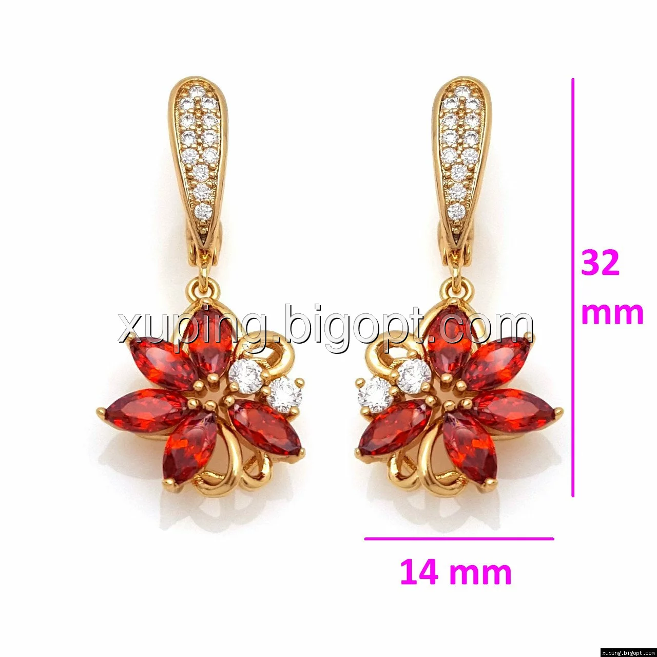 Серьги висюльки, Цветок с красным цирконием, англ.замок, позолота Xuping
