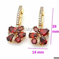 Серьги висюльки, "Аленький Цветок", с красным цирконием, англ.замок, позолота