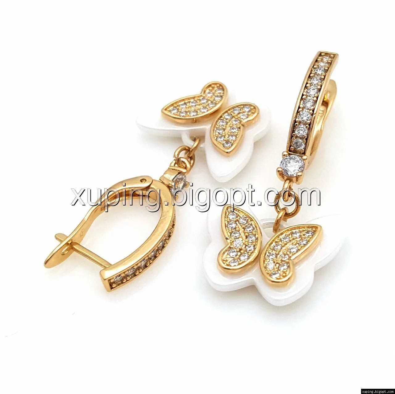 Серьги висюльки, Бабочка с белой керамики и камнями, англ.замок, позолота Xuping