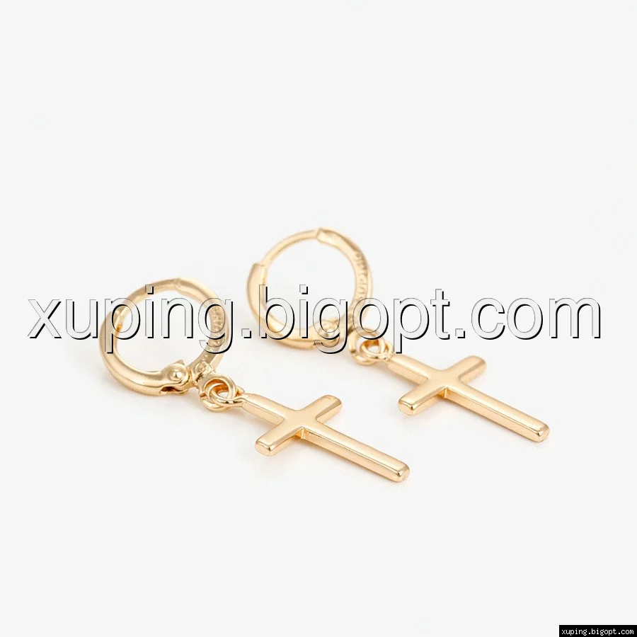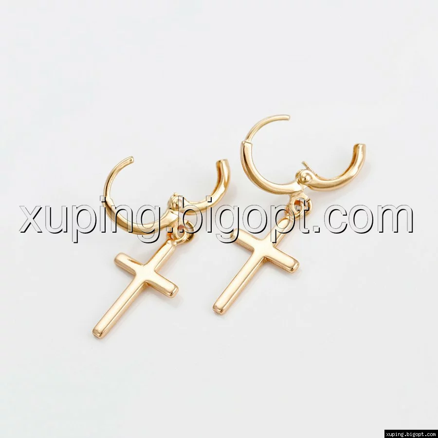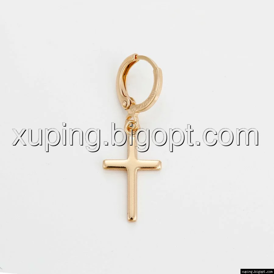 Серьги висюльки, Крестик без камней, позолота