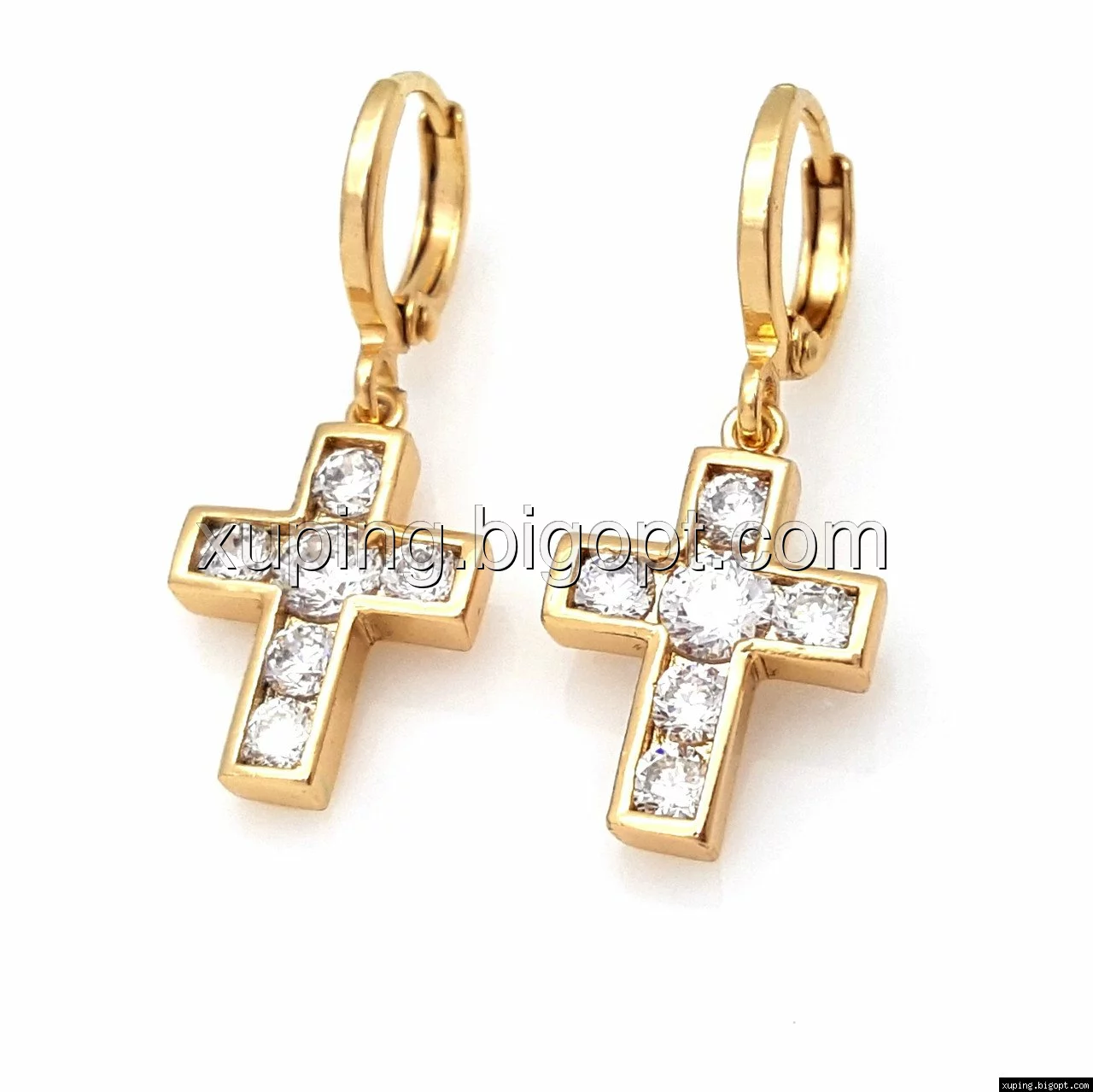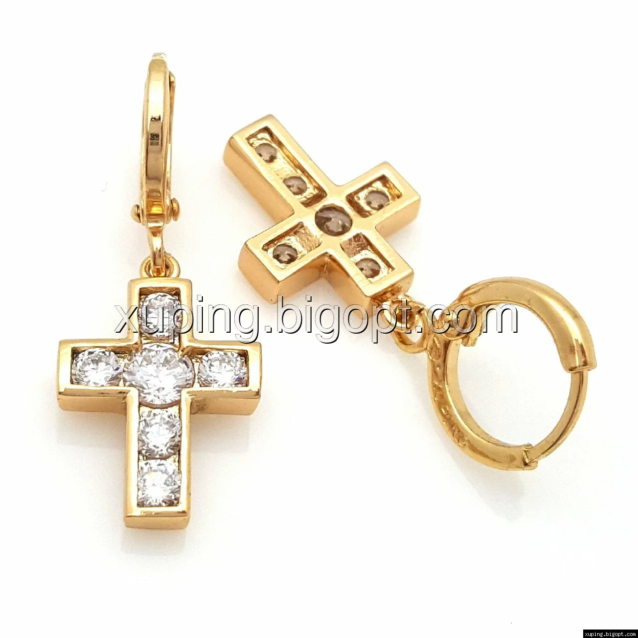 Серьги висюльки, Крестики со вставкой циркония, позолота Xuping