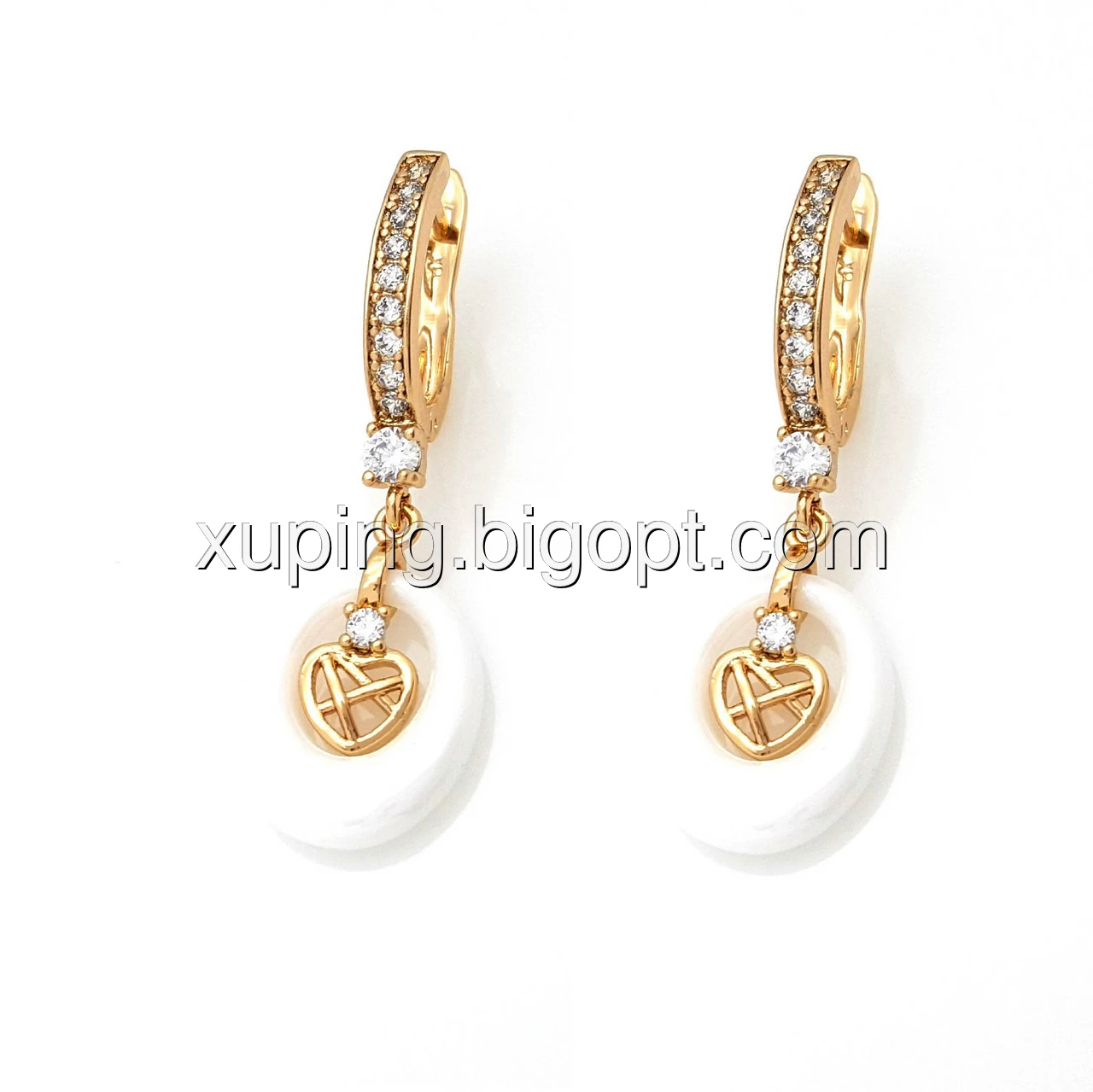 Сережки Овал з білої кераміки та вставкою цирконію, англ.замок, позолота Xuping, 18К