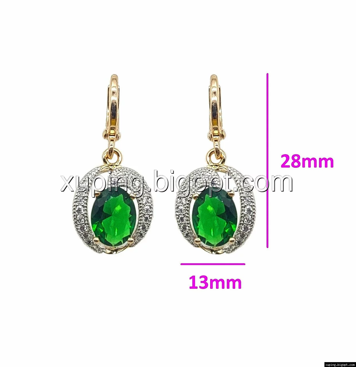 Серьги висюльки с зеленым цирконием, позолота+родий, Xuping