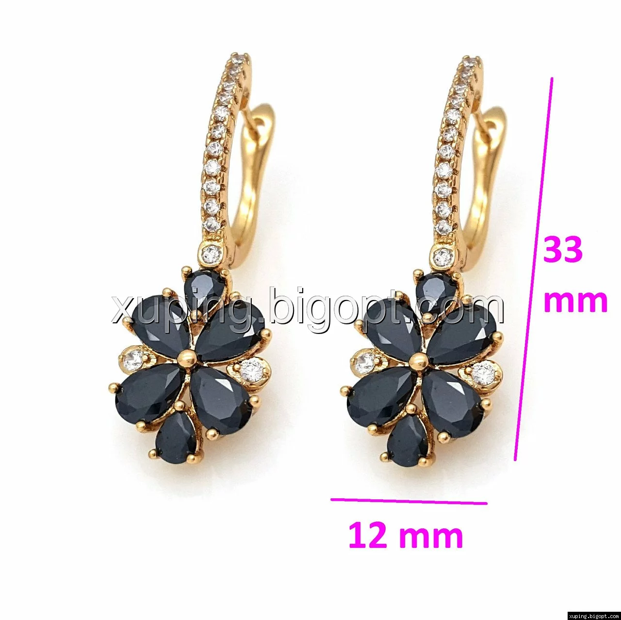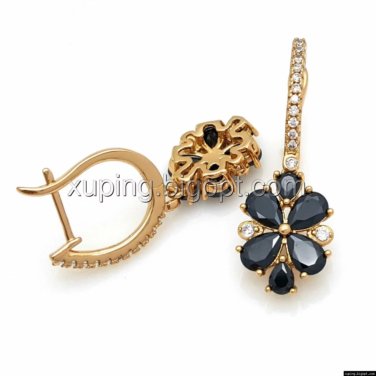 Серьги висюльки, Цветок с черным цирконием, англ.замок, позолота Xuping