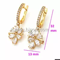 Серьги висюльки, Цветок с овальным цирконием, англ.замок, позолота