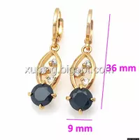 Серьги Xuping 704728, Овальные висюльки, с черным камнем, позолота