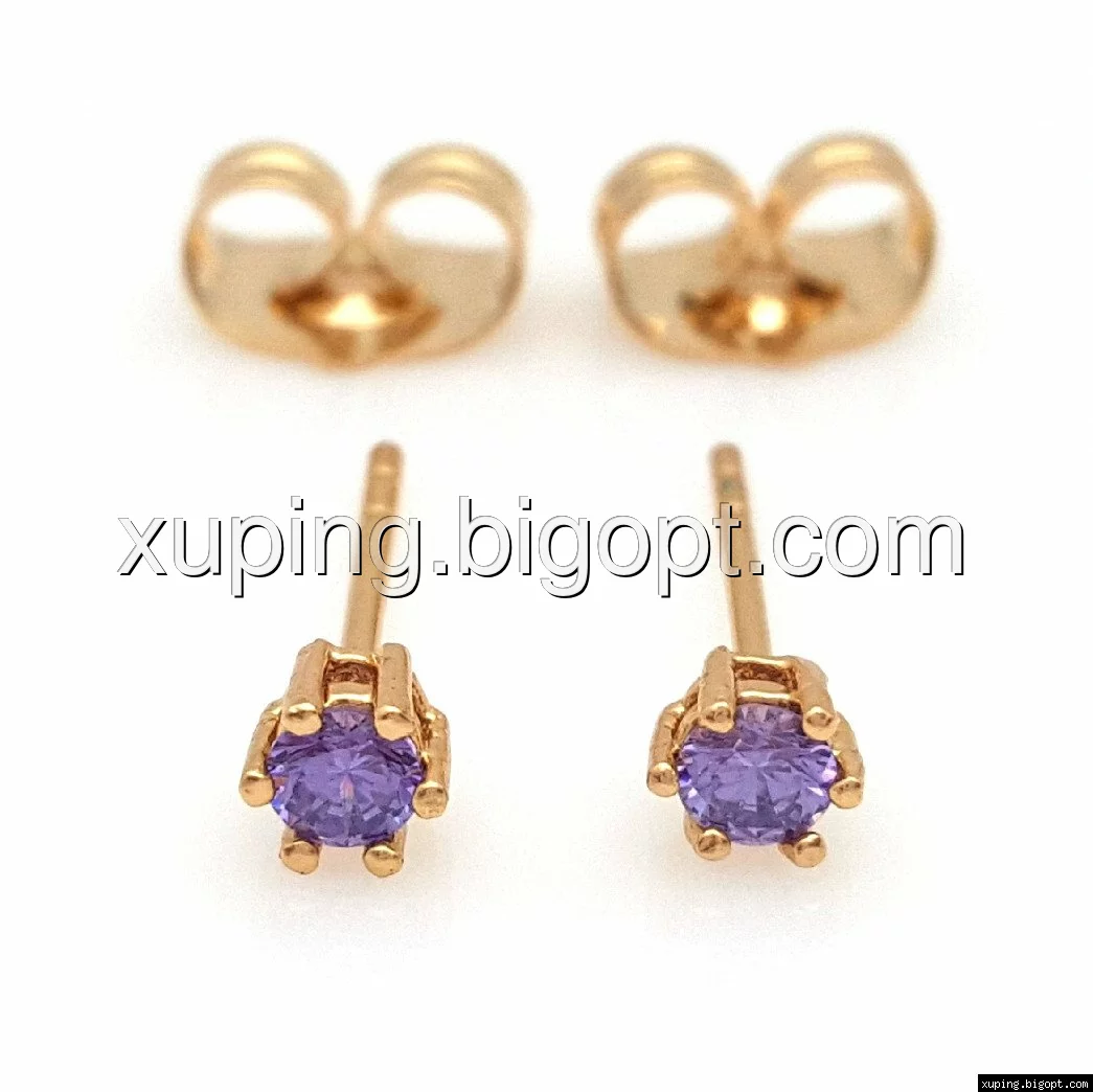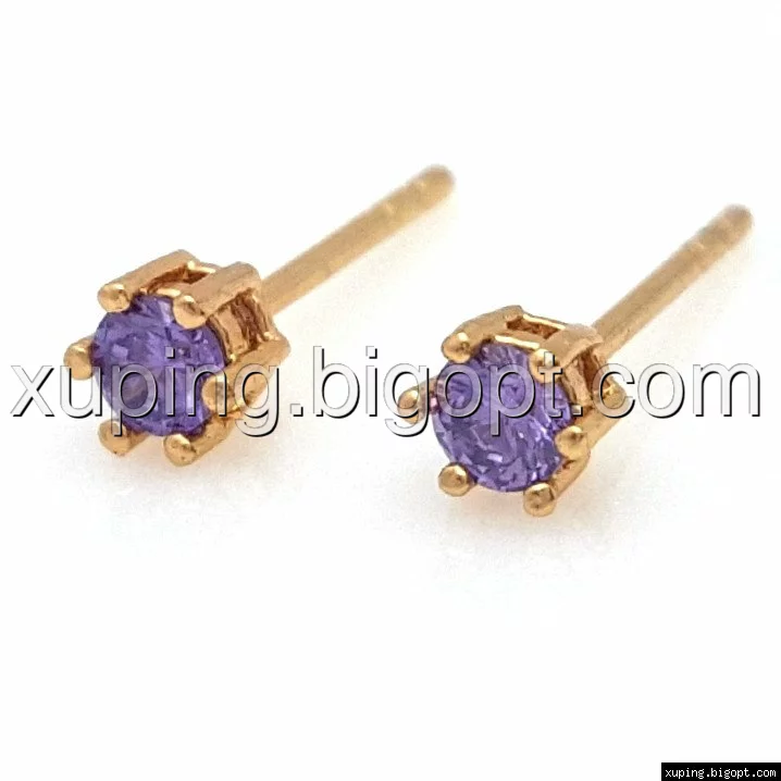 Серьги Xuping 704786, гвоздики Фиалковый цирконий, крепление 6 лапок, позолота