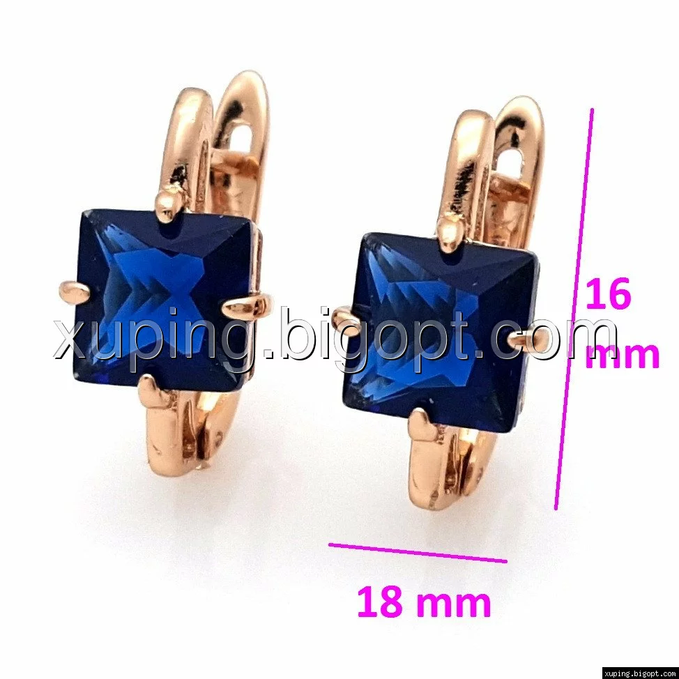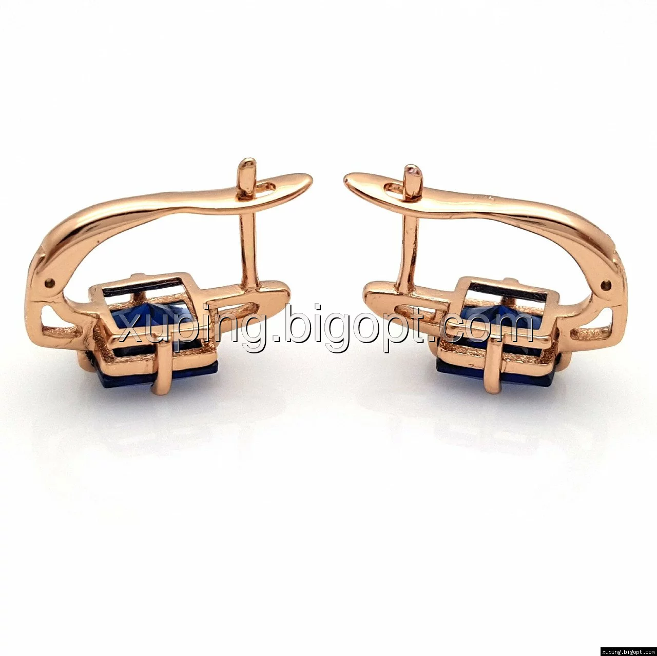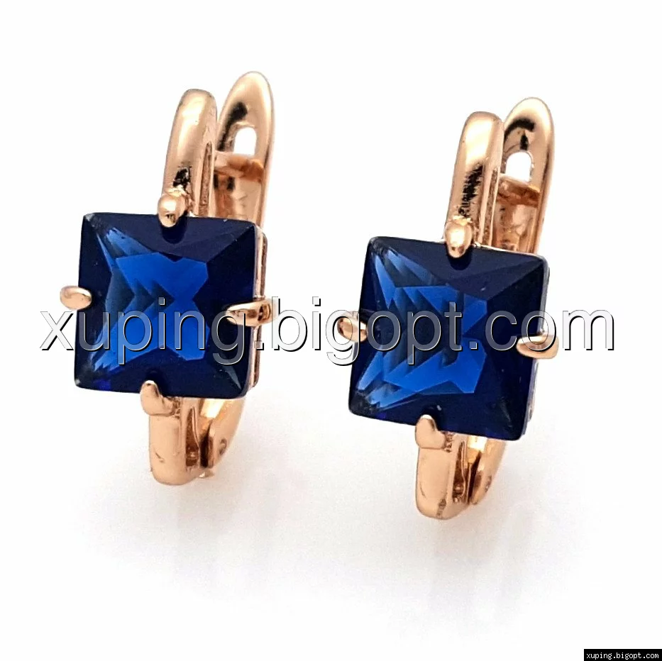Серьги Xuping, Куб с синим цирконием, англ.замок, позолота 14К