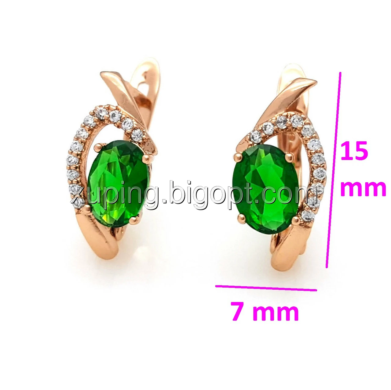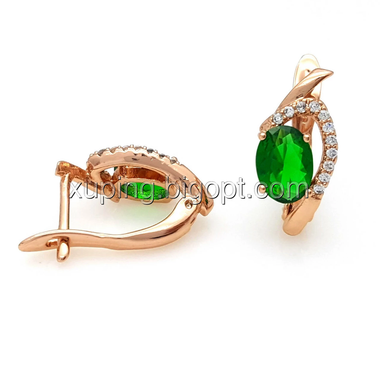 Сережки Завиток з зеленим цирконієм, англ.замок, позолота Xuping, 14к